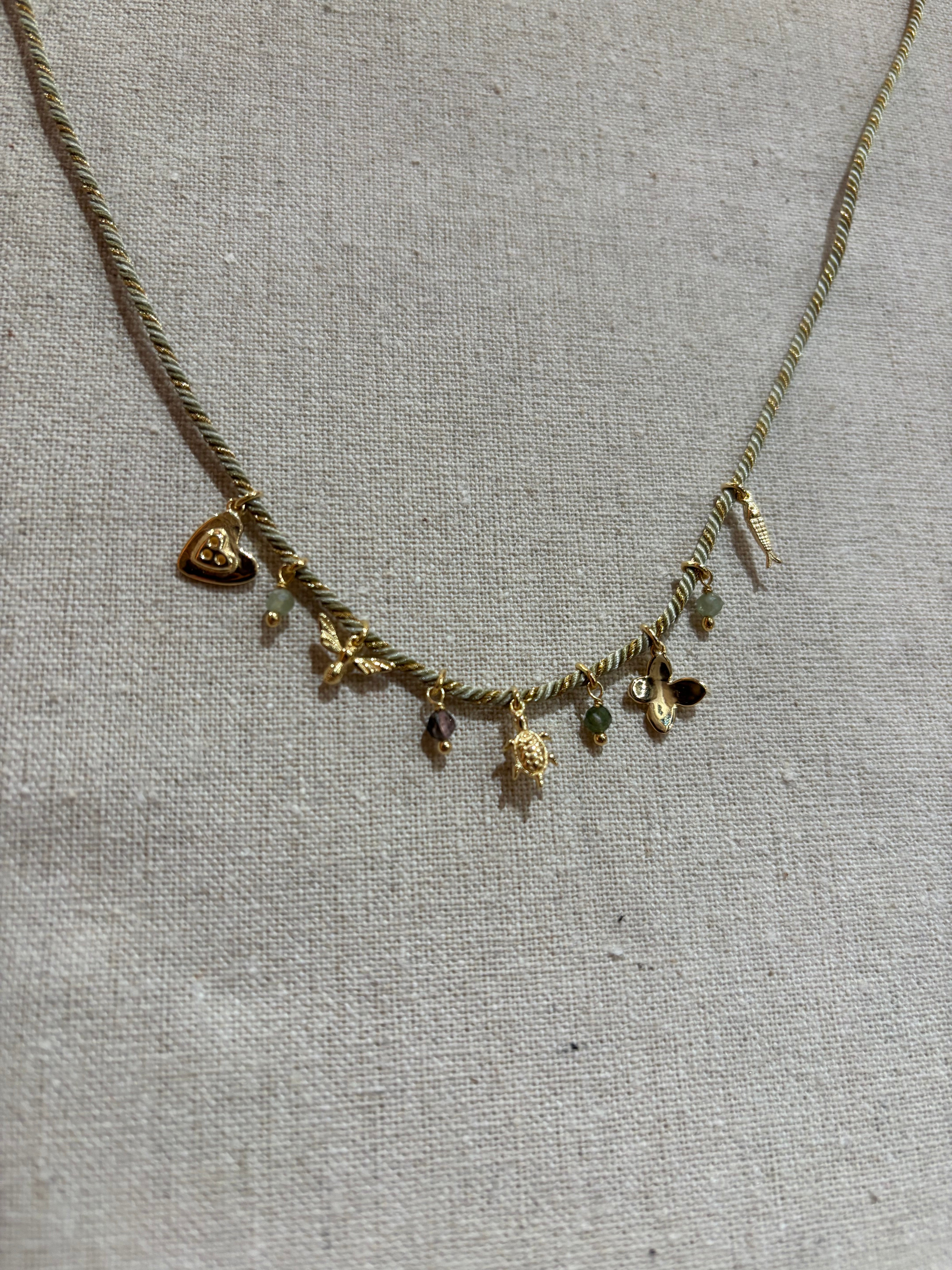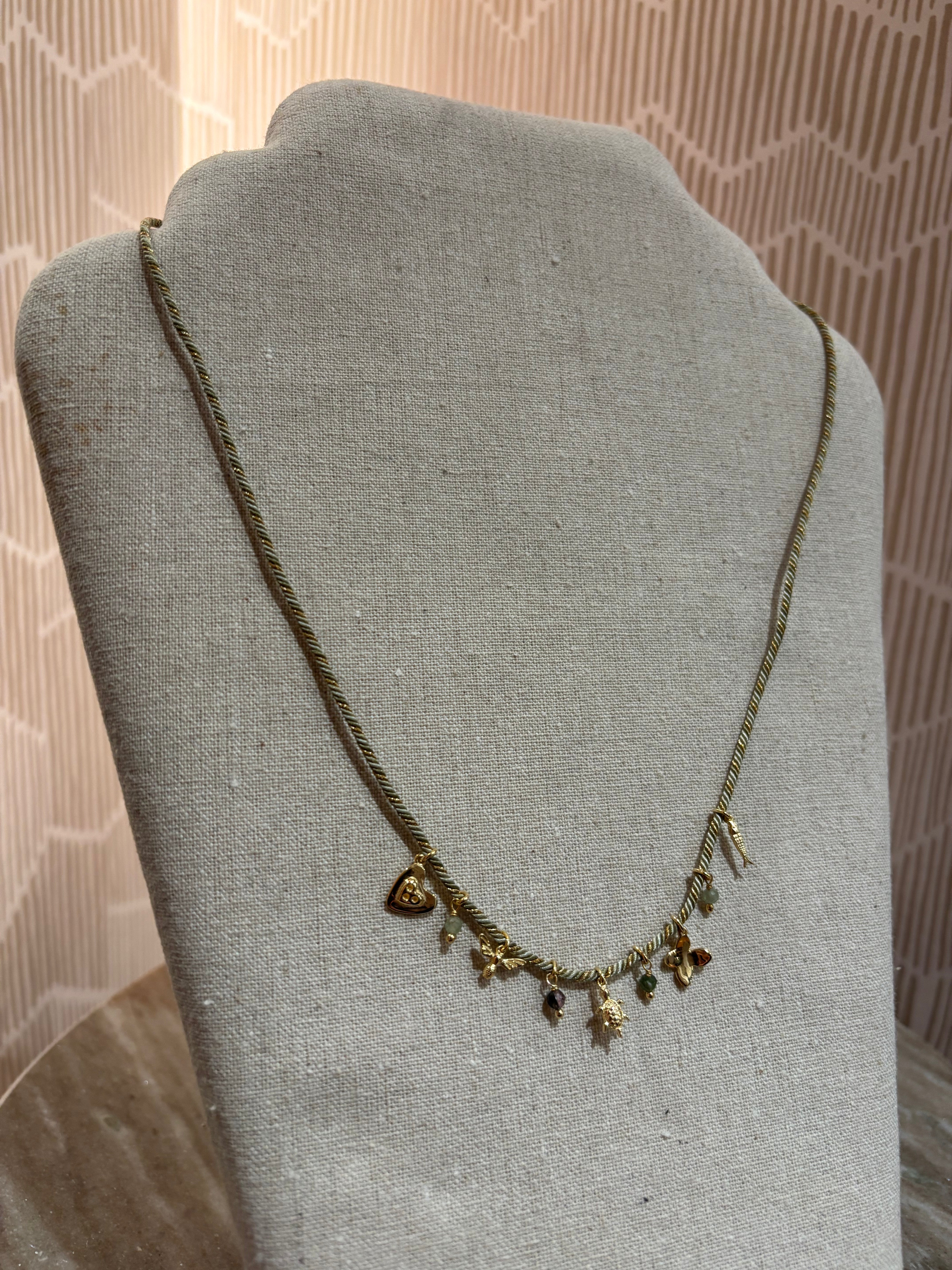 Elevate your style with the Golden Hour Priya Necklace, a sophisticated charm necklace featuring four delicately gold-plated charms paired with four mixed gemstones. Each piece is uniquely handcrafted, offering a subtle variation in gemstone colors that enhances its exclusive appeal. This elegant accessory captures the warm glow of golden hour, perfect for adding a refined touch of color and artistry to any ensemble.