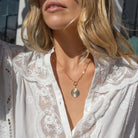 A simple, textured coin charm to inspire your day-to-day. Pair with the Rae chain for a subtle sparkle.