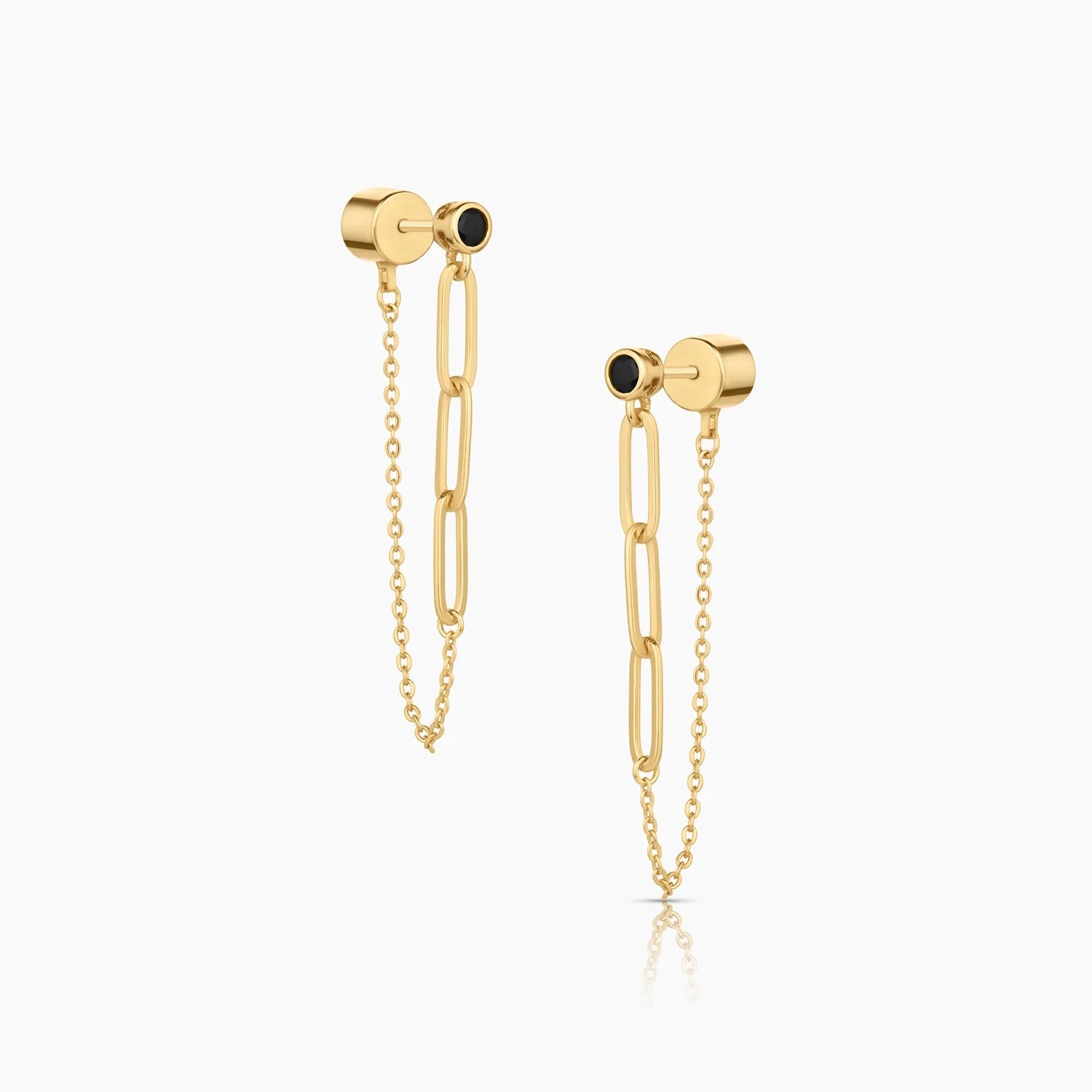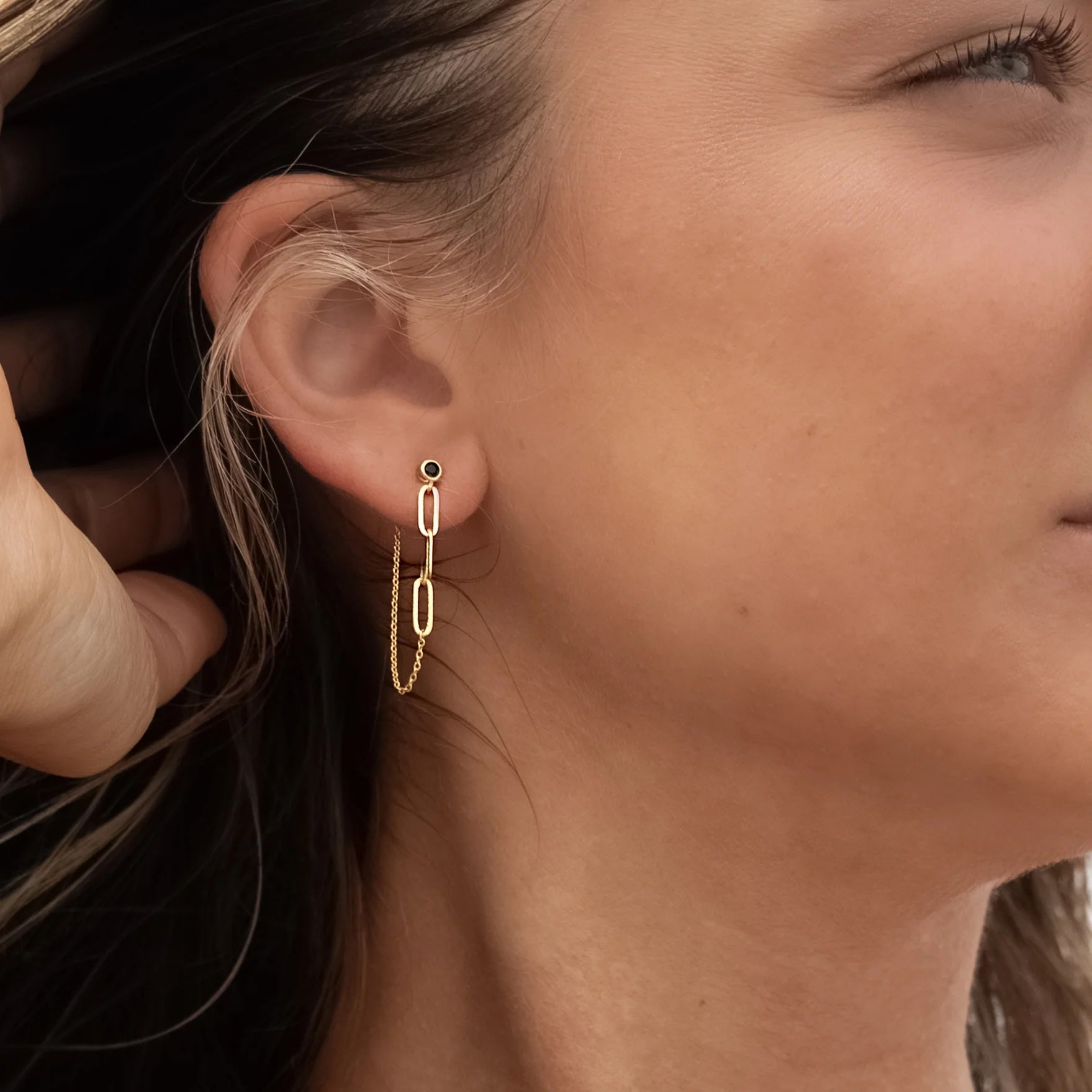 Rock that unique look with THATCH's Juni Earrings. These gold chain loop earrings provide a stylish twist on the classic link chain design. Elevate any outfit with a touch of subtle elegance.