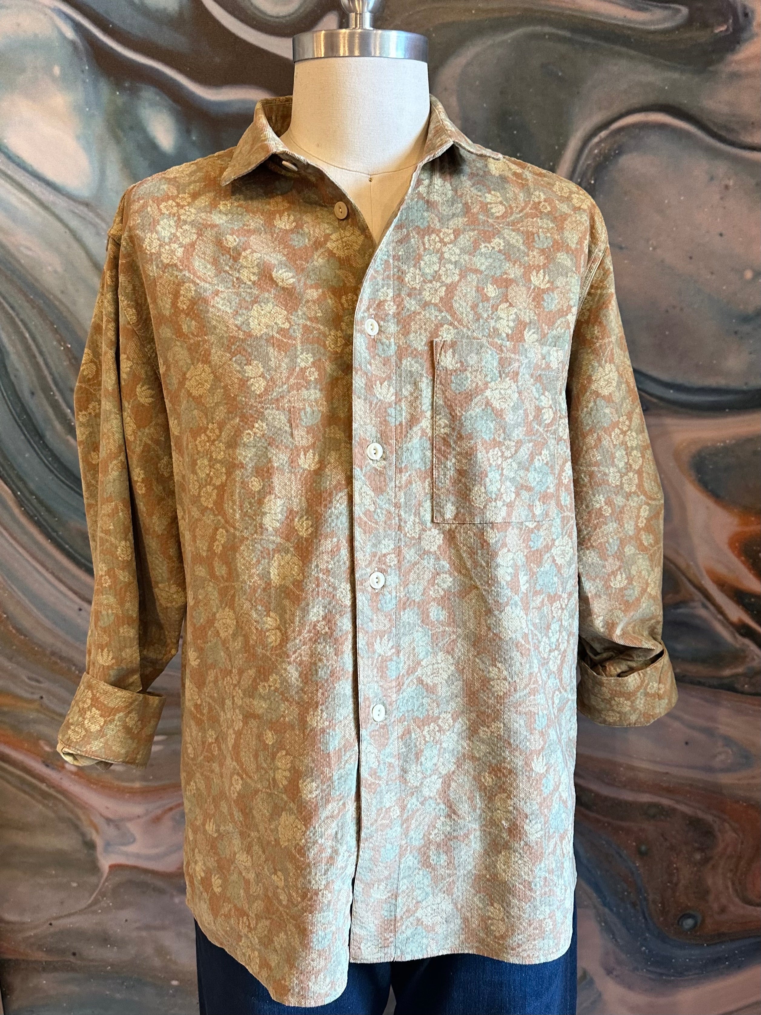 This classic ABCL Men's Cali Corduroy Shirt features a corduroy knit and classic button down collar with a muted floral print. Its long sleeves make it ideal to wear for chilly days. Perfect for work or play, this shirt adds a touch of style to any outfit.