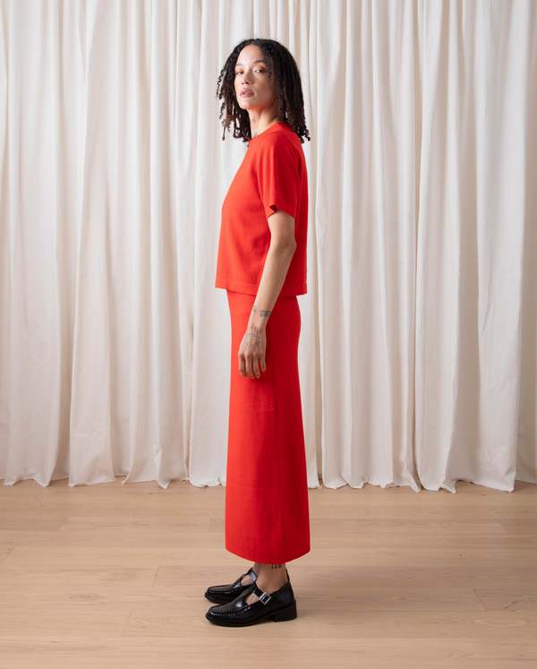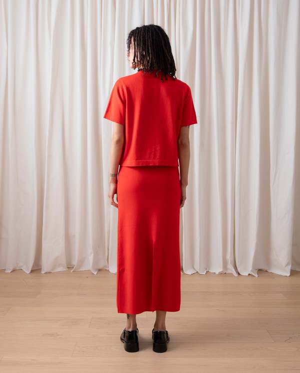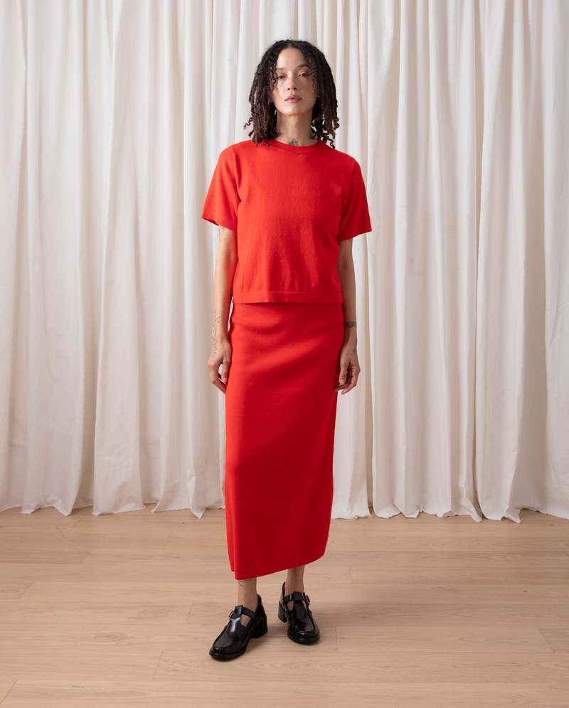 Boxy and slightly cropped knitted t-shirt in soft Organic Cotton/Cashmere yarn.