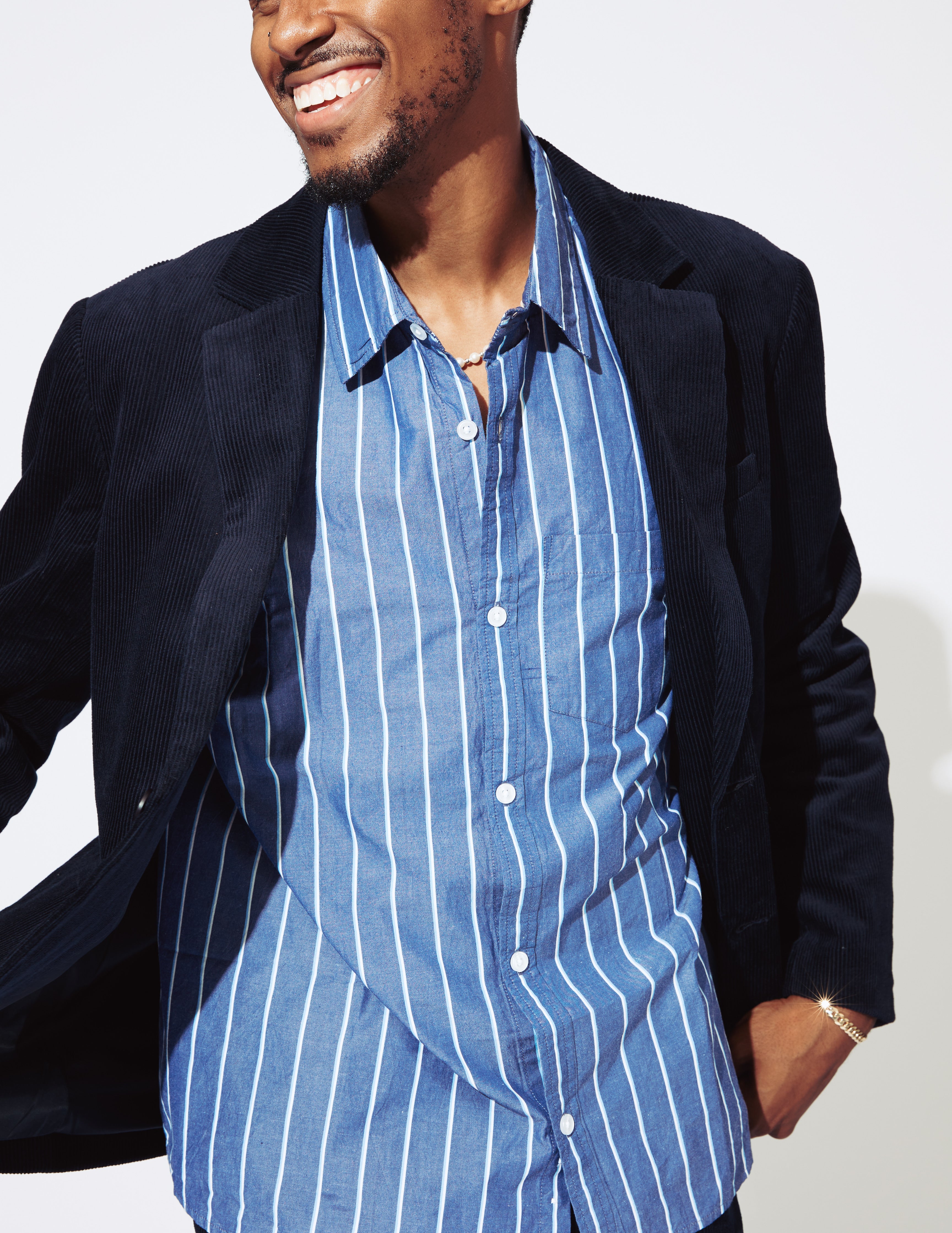 The Corridor Men's Stripe LS Shirt in Blue is a stylish and versatile option for any wardrobe. This lightweight cotton shirt features a twin stripe design and a classic button-up front. The collar adds a touch of sophistication, making it perfect for both casual and formal occasions. Elevate your style with this timeless piece.