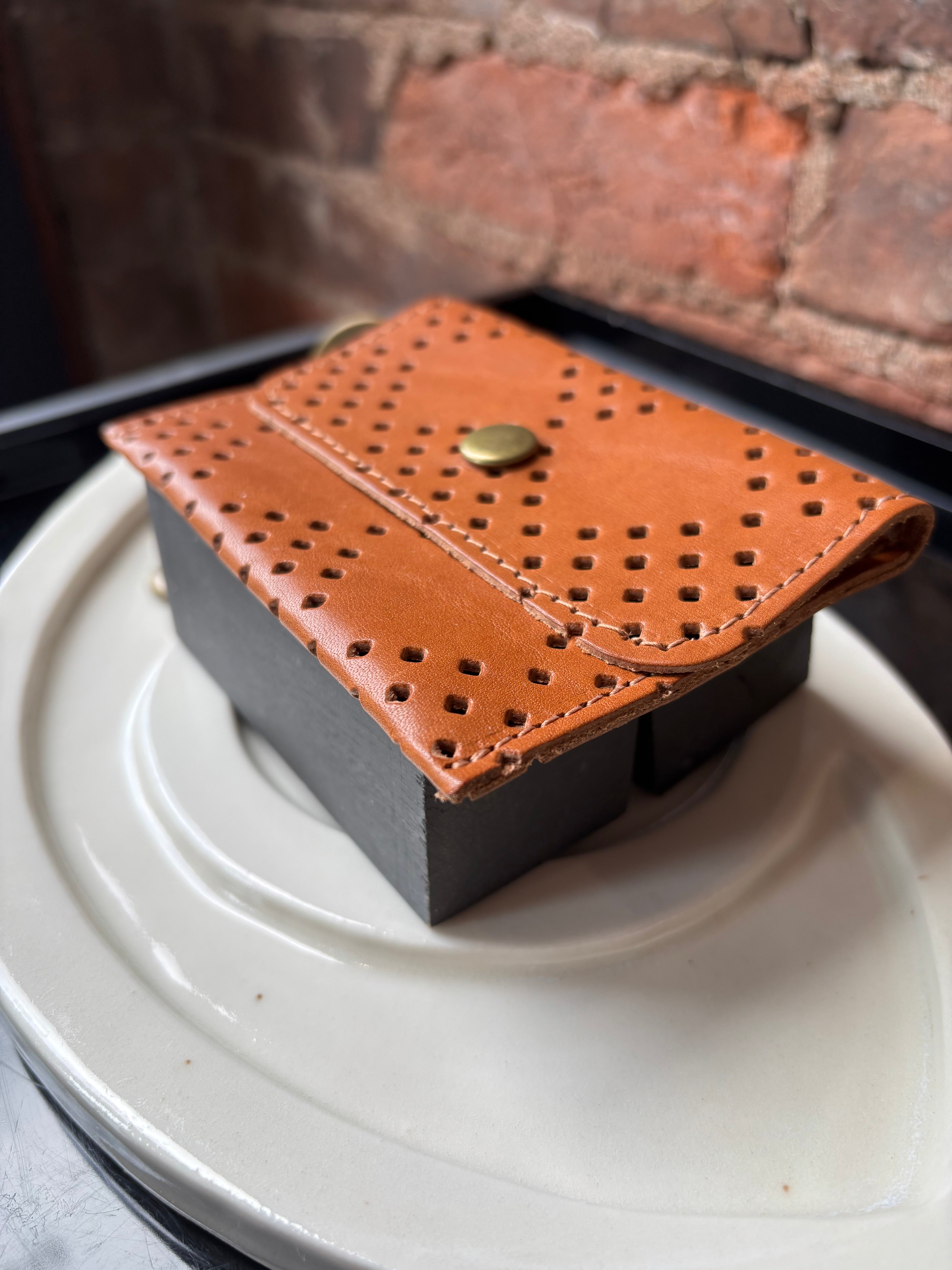 Clip it on just about anything to keep organized, like your bag or your belt loops.  Snap closure.  100% leather.  Made in USA.