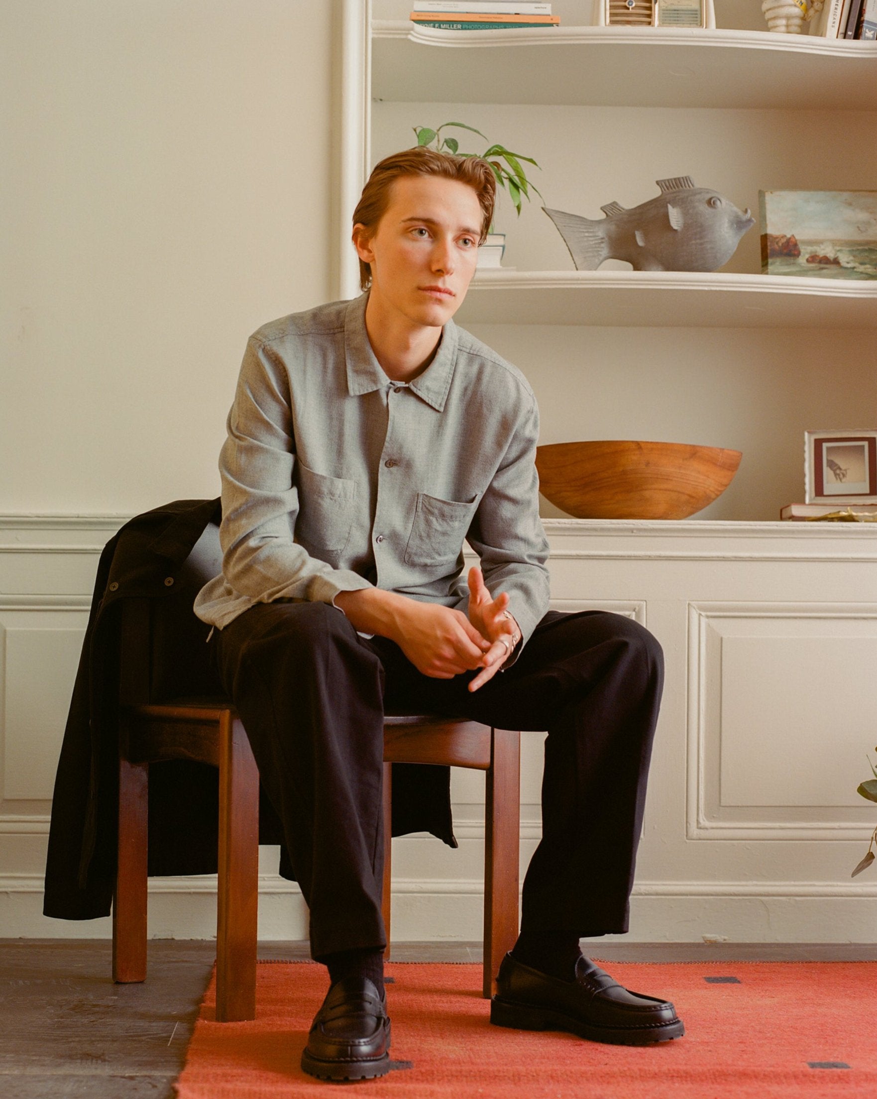 Traditional 50's style meets modern craftsmanship. This garment is made from a blend of modal and merino wool for comfort and warmth. Crafted in Portugal at a shirting factory that specializes in working with fine fabrics. This garment showcases meticulous attention to detail in its sewing—a true testament to the skill required to handle such delicate material.
