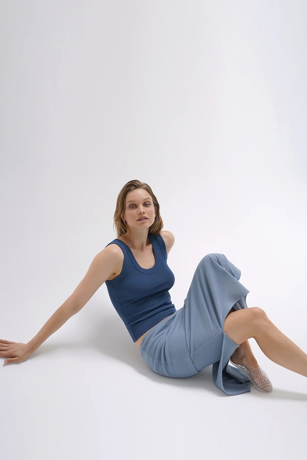 The LnA Dustin Ribbed Tank in Ink Blue is the perfect choice for a comfortable and stylish look. Made of a soft cotton rib material, it features thicker straps and a square scoop neckline for a flattering fit.