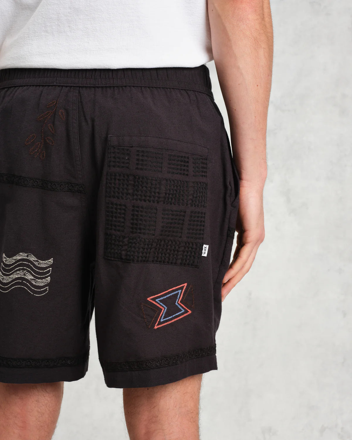 Crafted from a cotton-linen blend, the Wax London Kurt Short in Doodle Embroidery Navy offers a relaxed fit and vibrant hand-drawn motifs. The elasticated waistband with internal drawcord provides comfort, while the back patch pocket adds functionality. Complete the co-ord with the matching Didcot shirt.