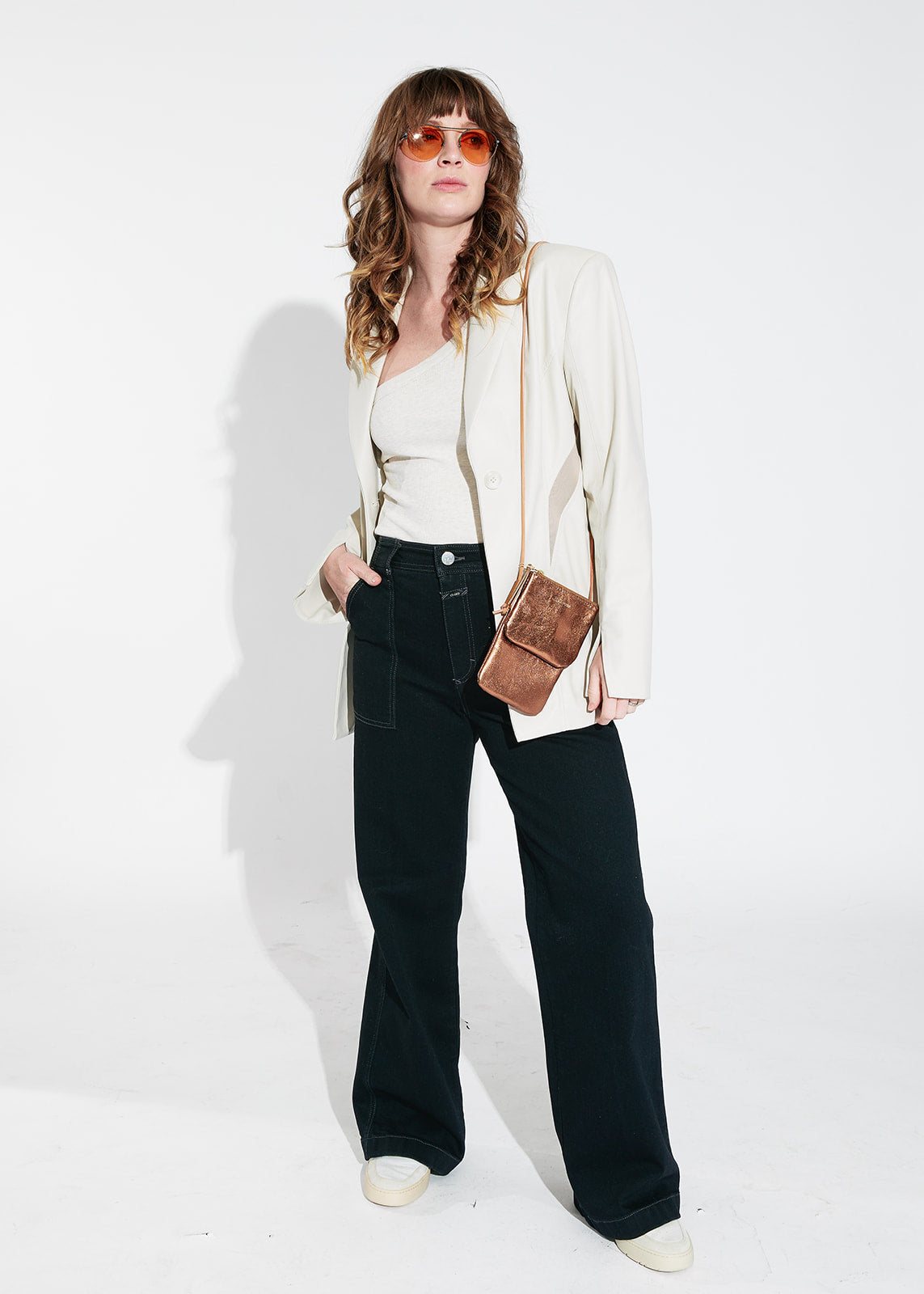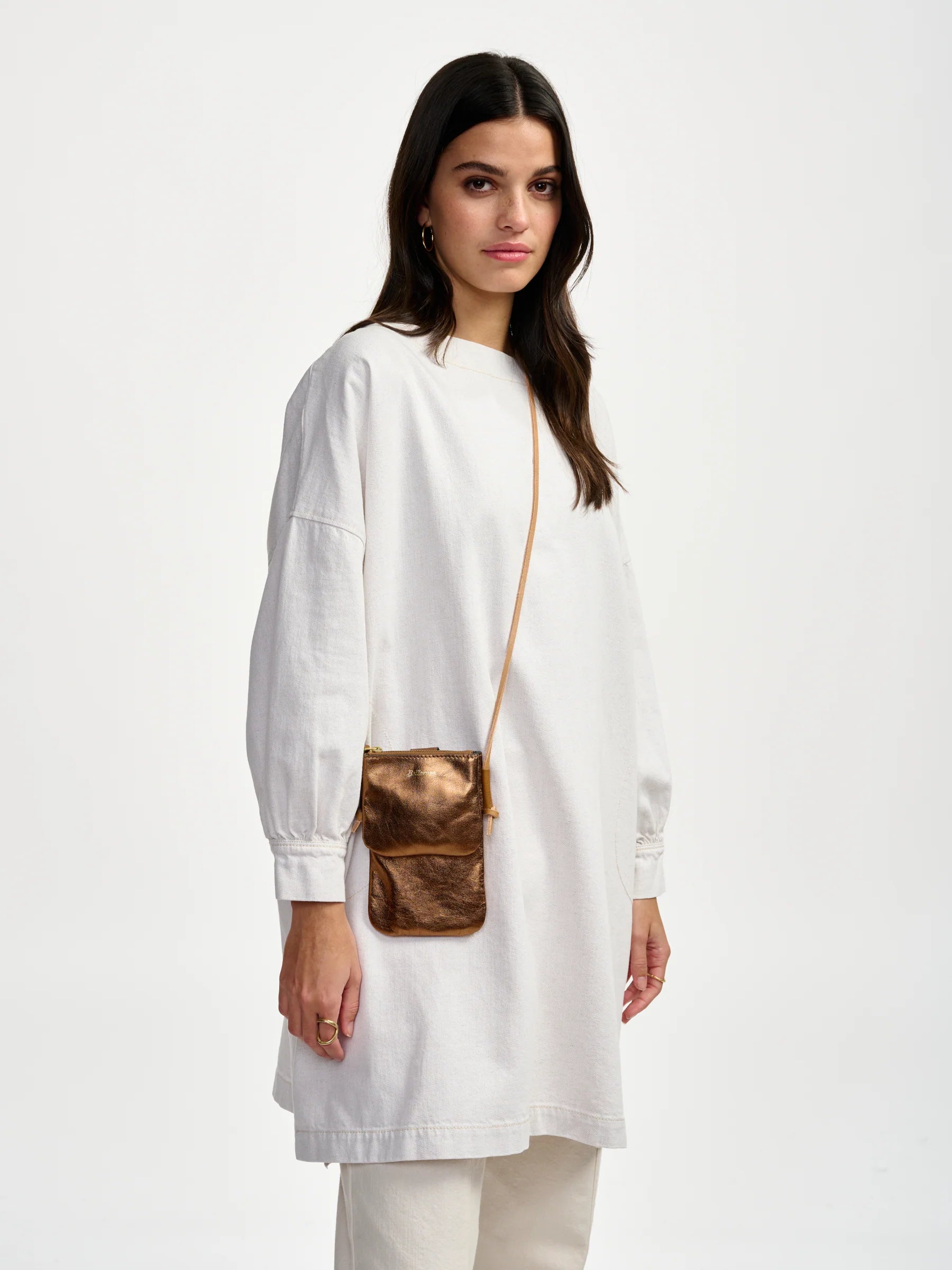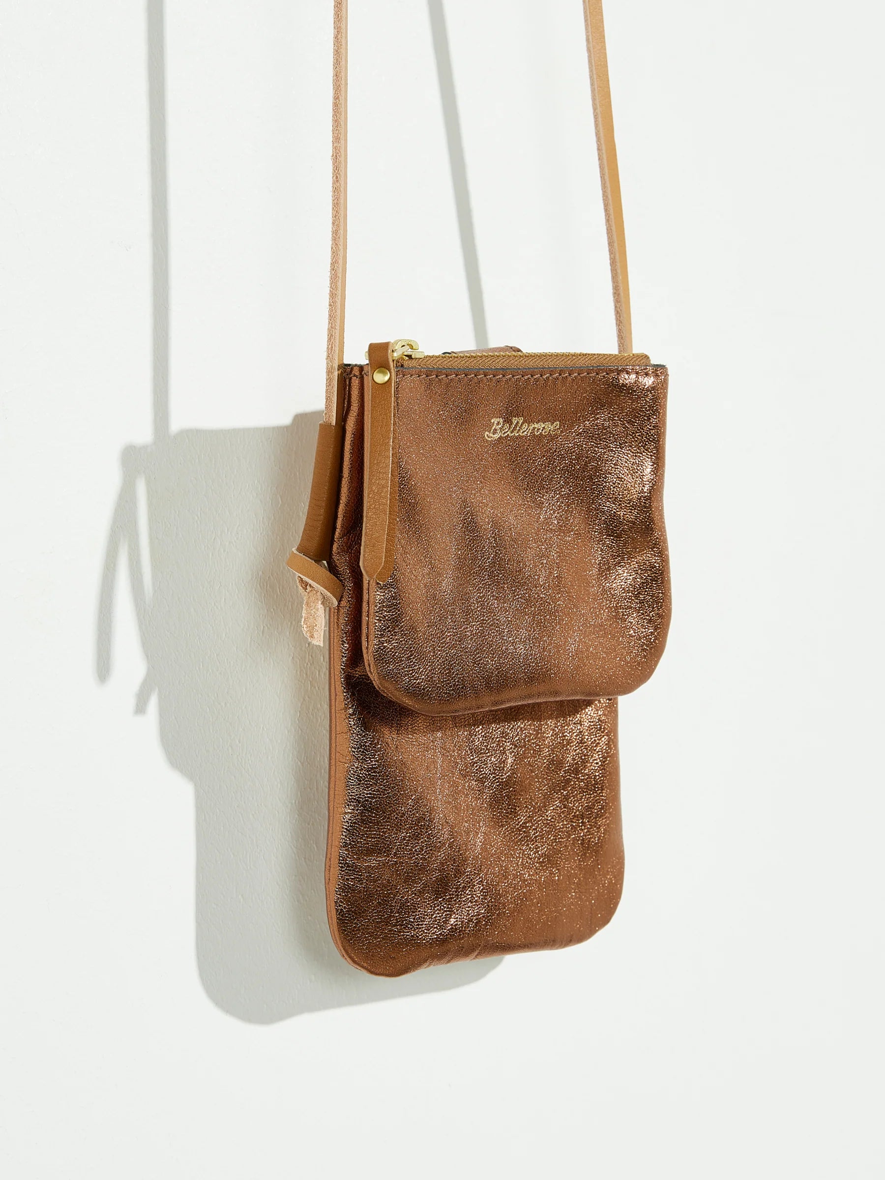 The perfect bag to tote your essentials. The Sidt is made from metallic tone leather with a main compartment to lodge your phone and a zipped pocket for your cards and keys. The self-tie adjustable strap lets you keep it as close to your heart as needed.