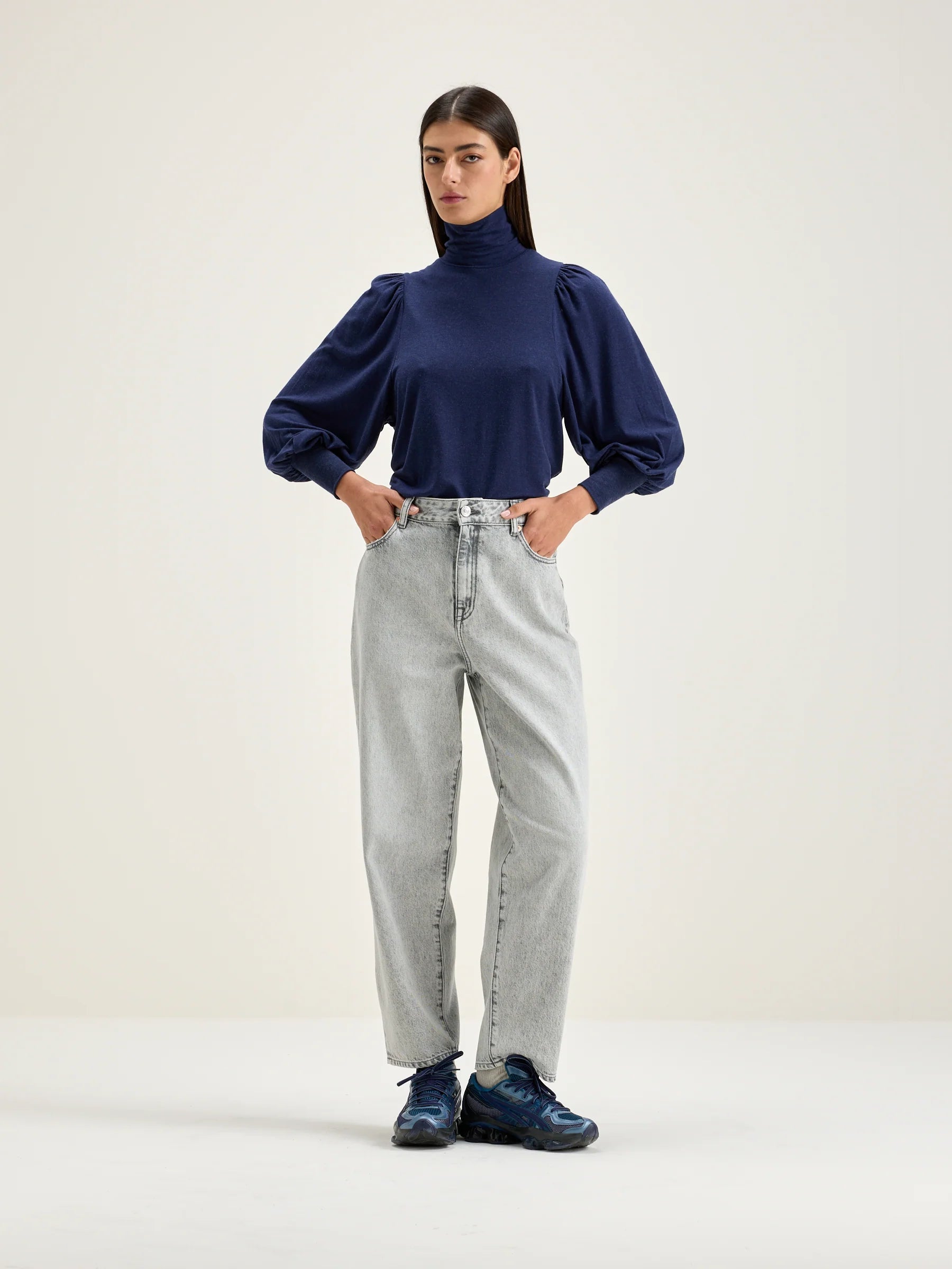 Bellerose turtleneck t-shirt in navy blue. Perfect for fall, a soft wardrobe staple.