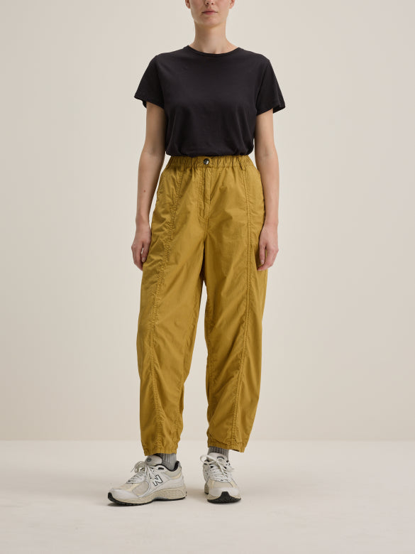 Effortlessly elevate your casual wardrobe with the Bellerose Wesly Pant. Seamlessly fusing style and comfort, this pant features a crisp khaki color, ankle length, and buttoned elastic waist. Perfectly tailored with seams down the front, it's the perfect addition to any outfit.