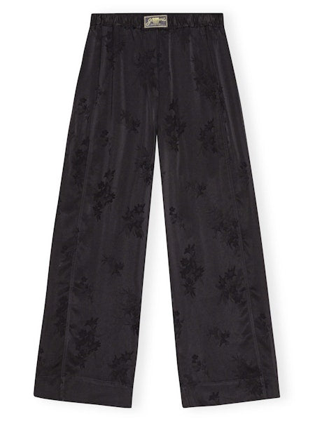 Ganni Fluid Satin Jacquard Pant - Black