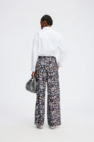 Trousers with a beautiful floral print, wide legs, and elegant details such as belt loops, pleats, and side pockets. The trousers have a zip closing.