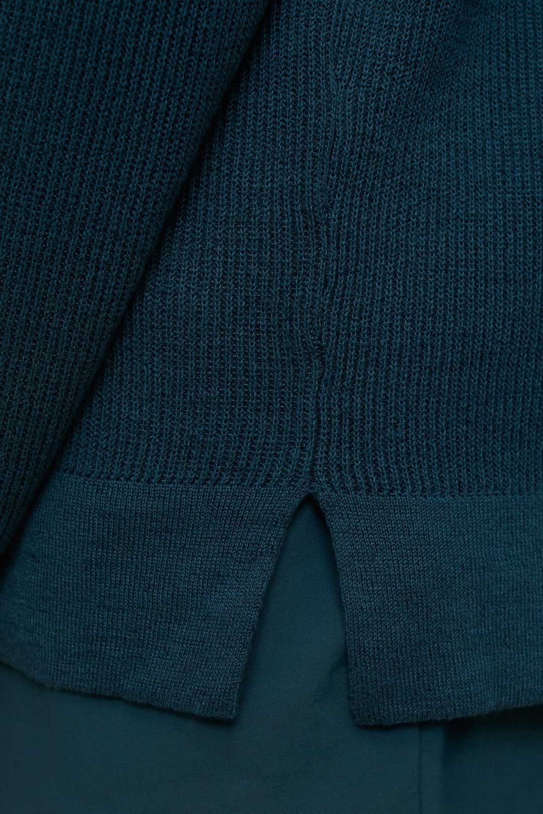 Rib knit swearer made of cotton and linen with an organic quality. Fine knit with slightly overlapping shoulders, side slits and fine ribbed endings at the sleeves and hem.