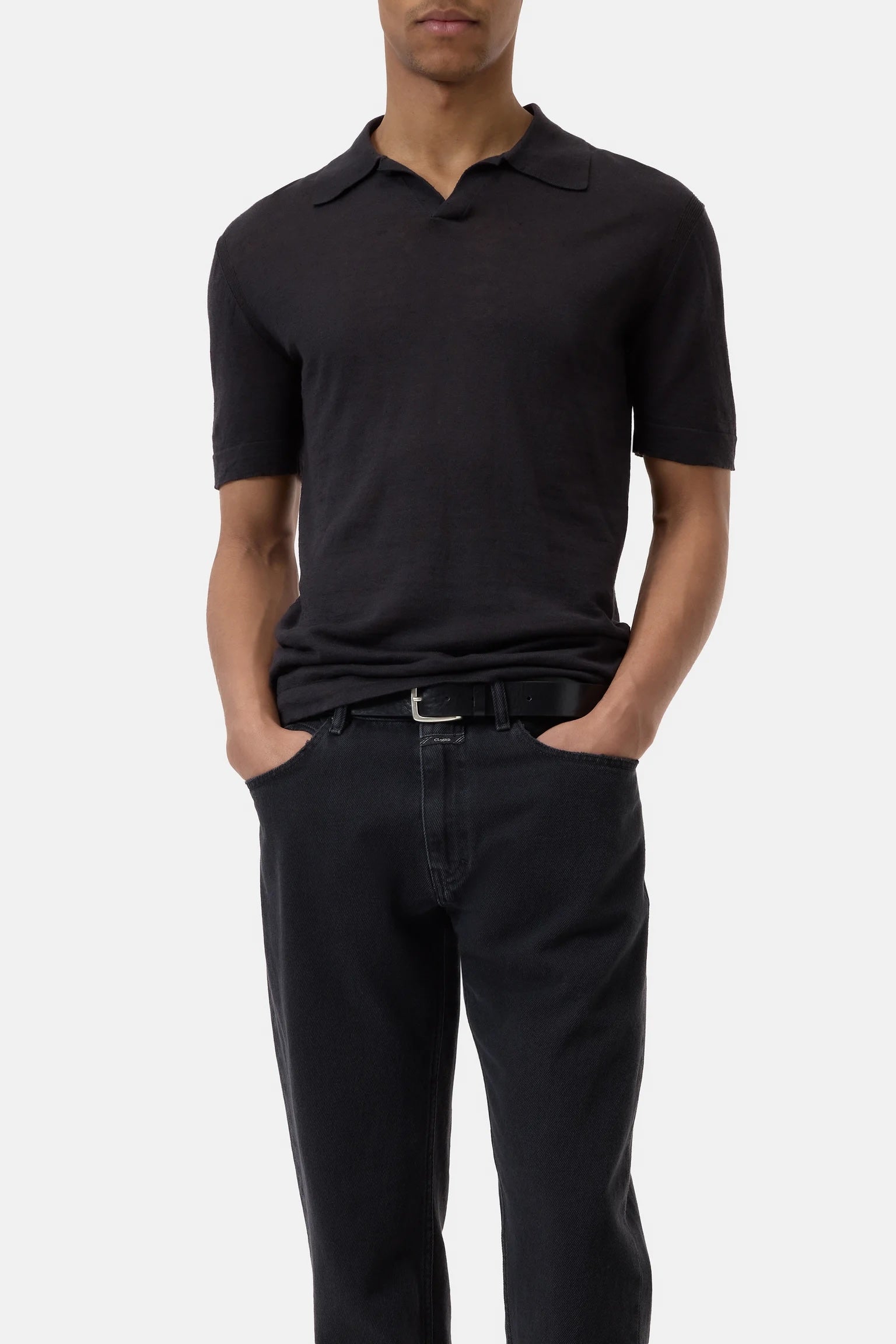Experience superior comfort and style with our Closed Men's Knitted Polo. Crafted from a high-quality linen-cotton blend in a lightweight jersey knit, this polo features a ribbed collar and a regular fit for optimal wearability. Elevate your wardrobe with this must-have piece in classic black.