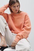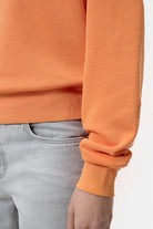 This pumpkin orange sweatshirt is crafted from soft, organic cotton for a comfortable and relaxed fit. Complete with a ribbed round neckline and straight hem, this cropped sweatshirt adds a touch of warmth and style to any outfit.