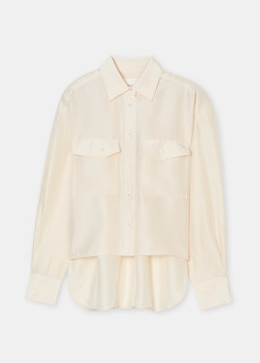 Upgrade your springtime wardrobe with this 100% silk utility shirt from Closed. Perfect for layering, or on its own, it has a timeless soft ecru color that is versatile with styling. Pure Habotai Silk will provide a soft, light wear for going out anytime of day, or for any occasion.