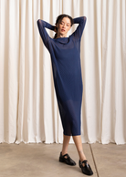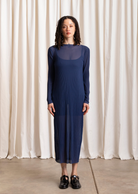 Sheer long sleeve midi dress made from stretch pleated mesh.