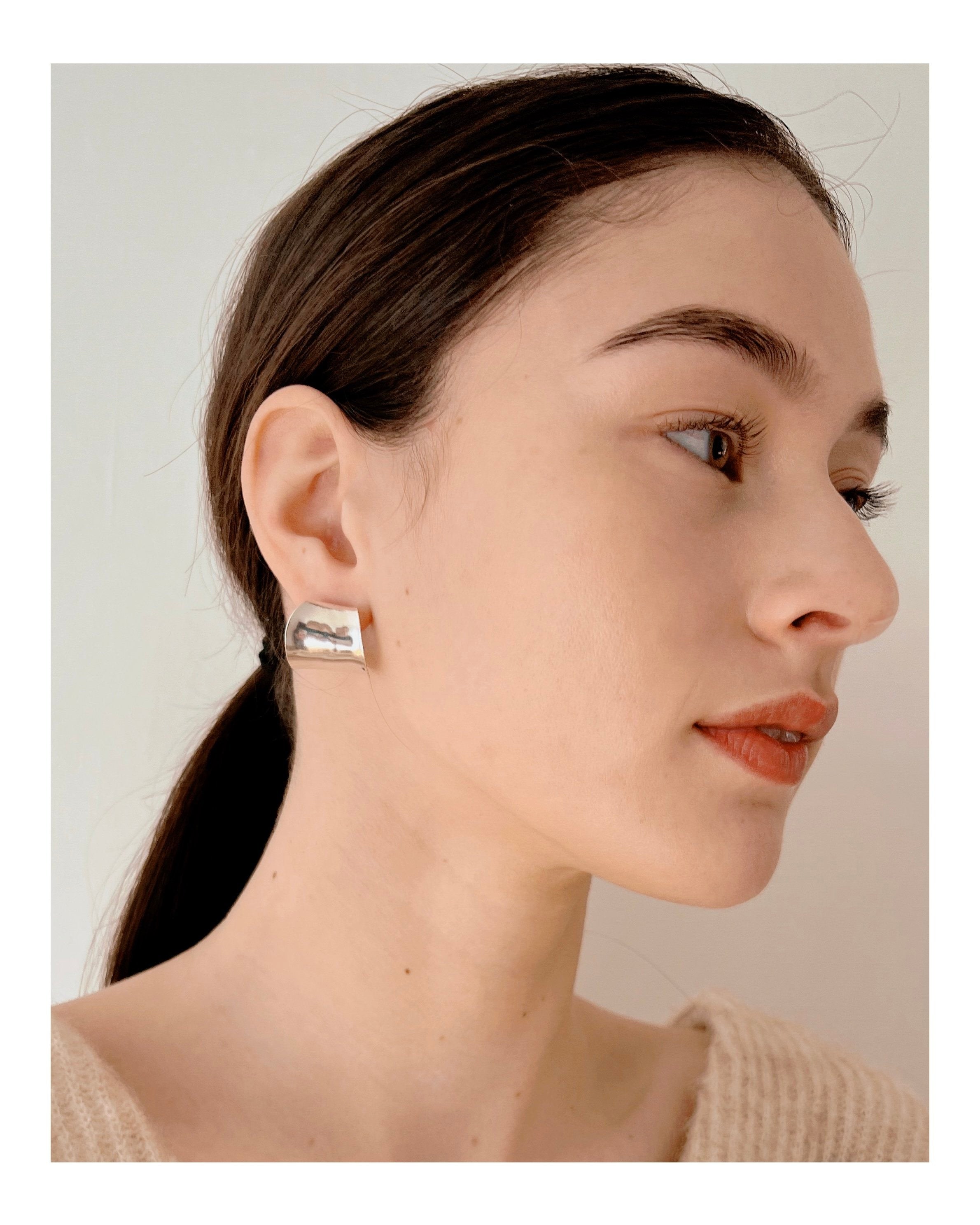 Expertly crafted with a wide and curved design, these 1 inch silver hoops exude a modern elegance. Completed with a convenient post back closure, these Fay Andrada Hilma SM Hoops are the perfect addition to any outfit.