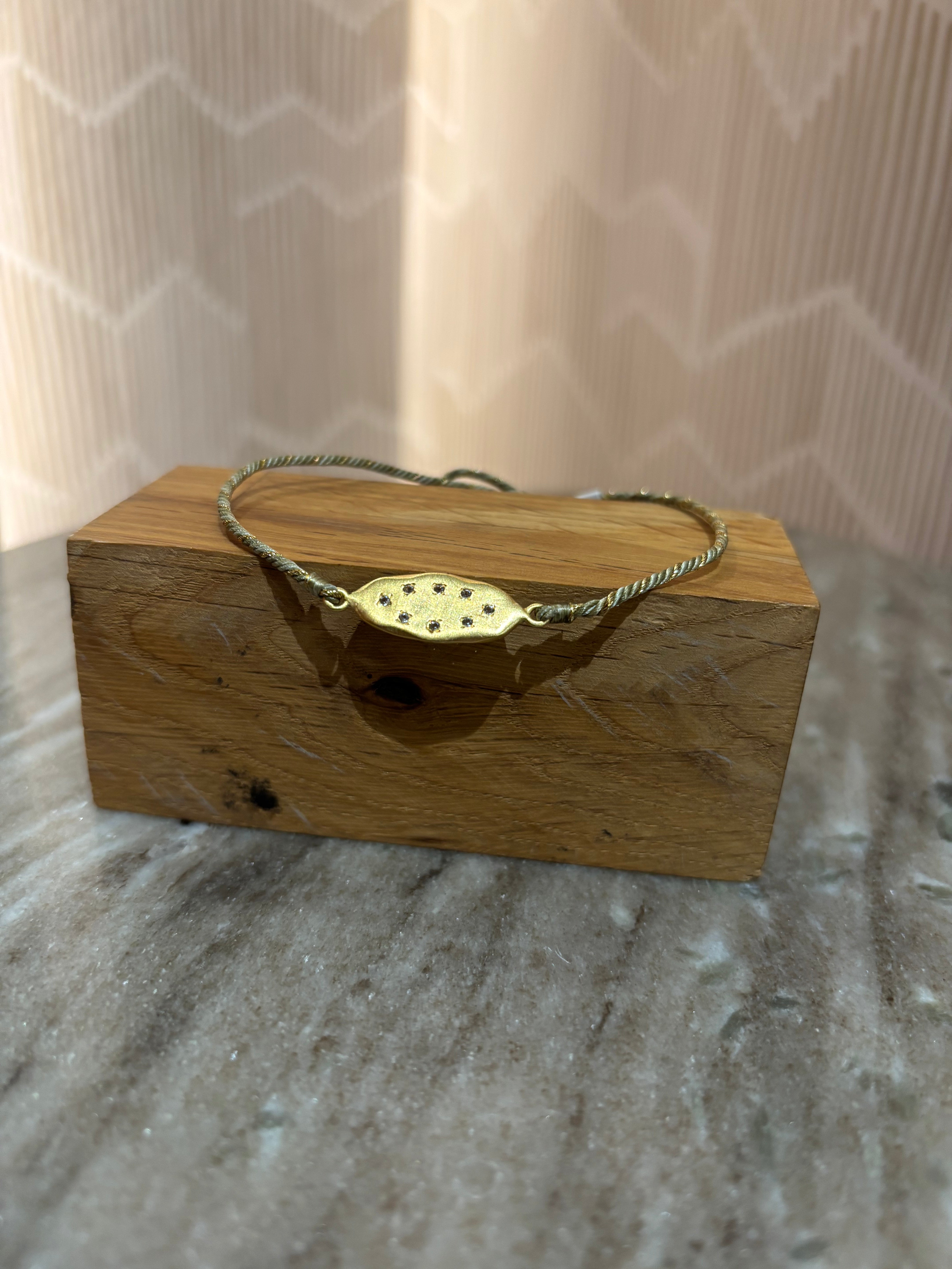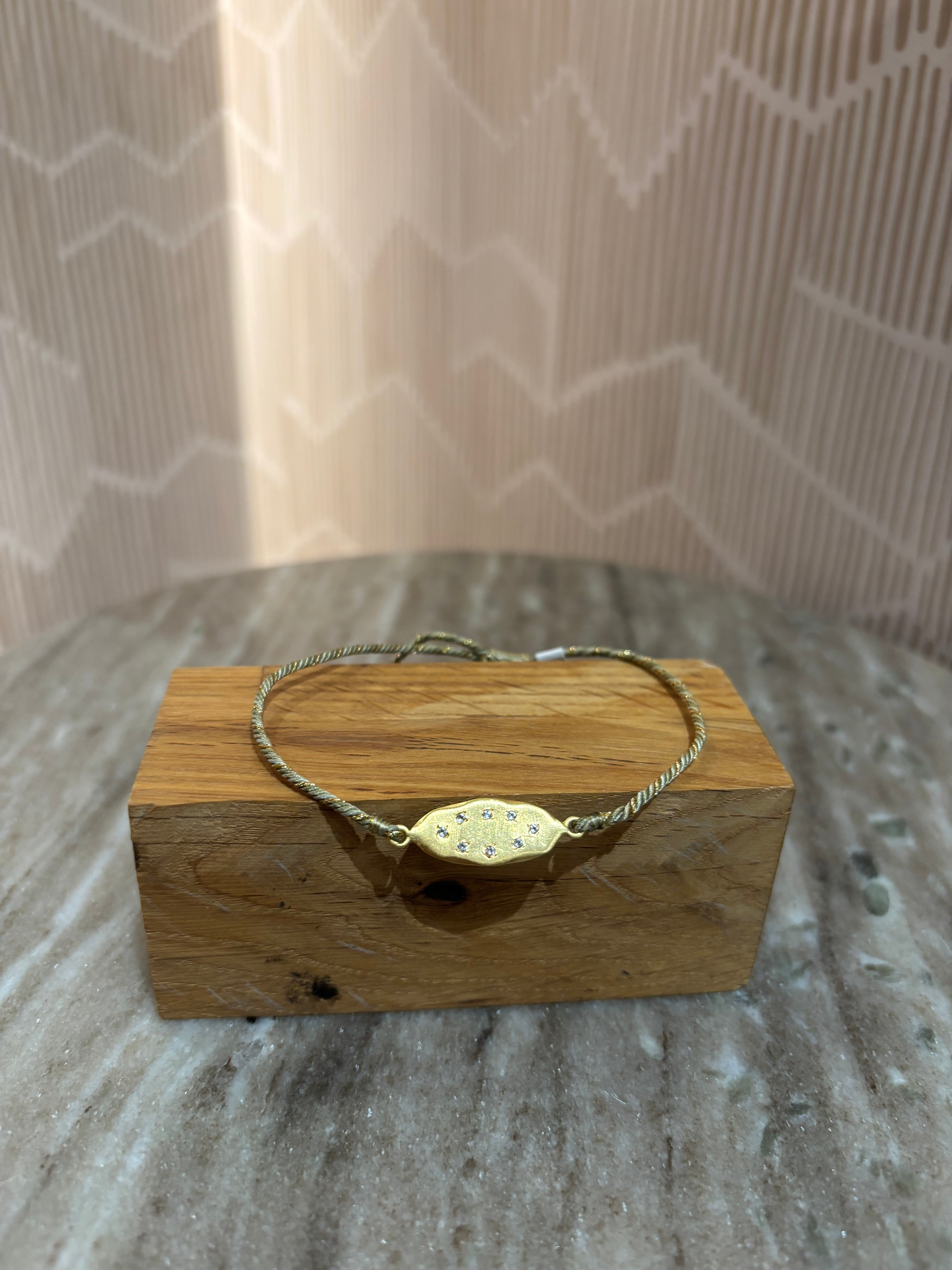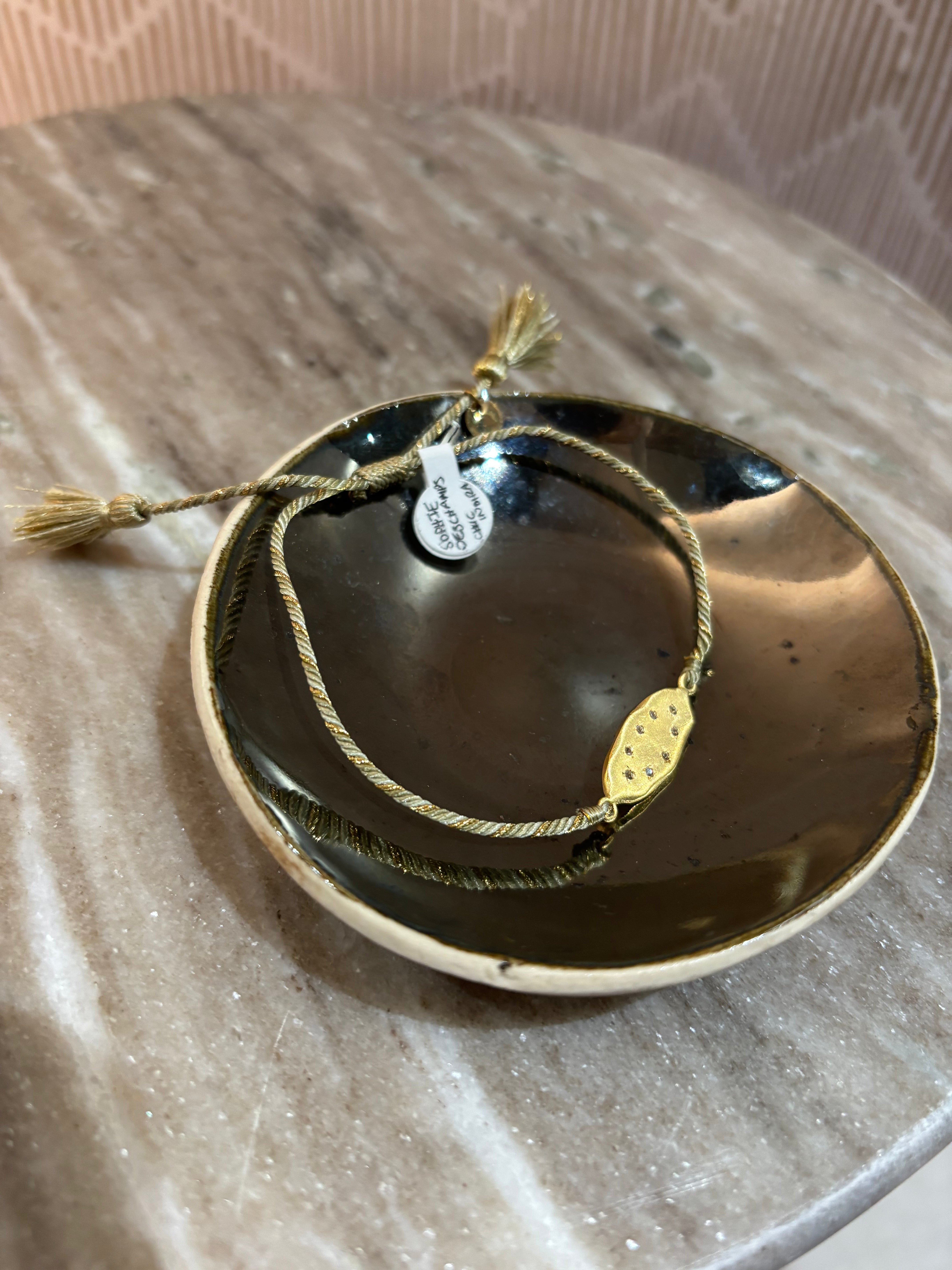 The Sophie Deschamps Indira Bracelet showcases natural white topaz gemstones set in radiant gold, blending timeless beauty with artisanal craftsmanship. Its adjustable sliding knots provide a customizable fit, while the unique handcrafted design captures the enchanting glow of golden hour, offering a sophisticated touch to any ensemble.