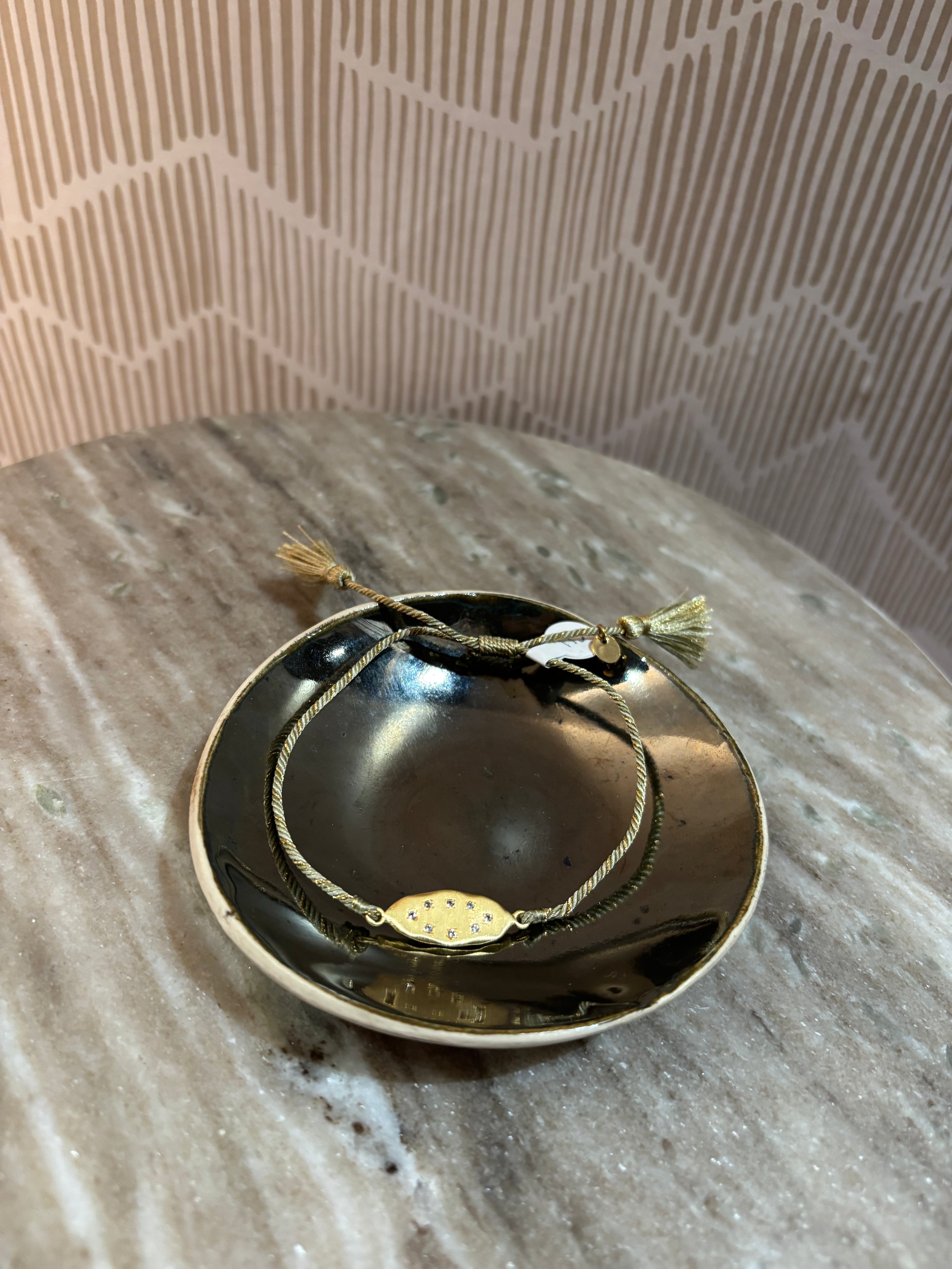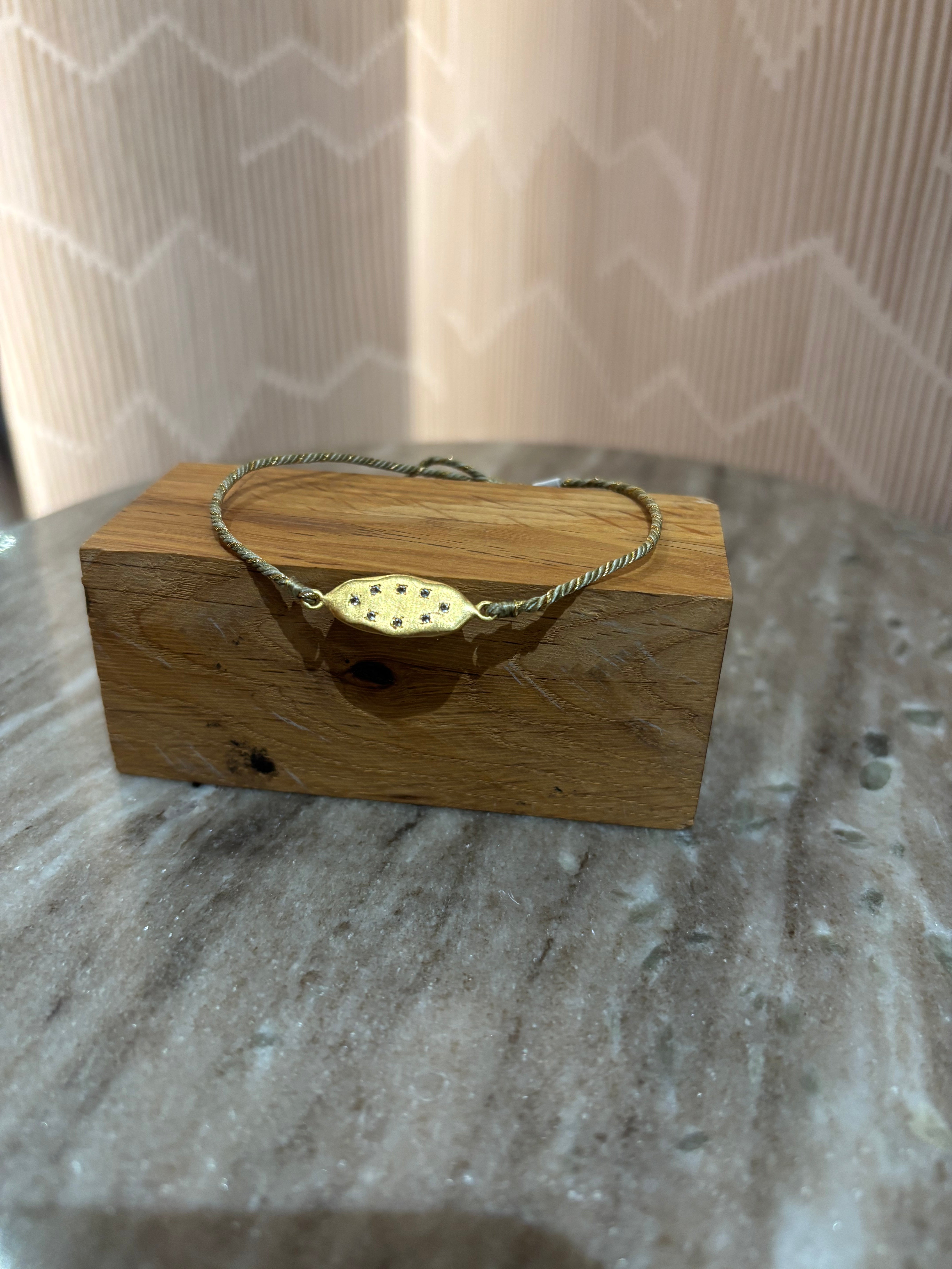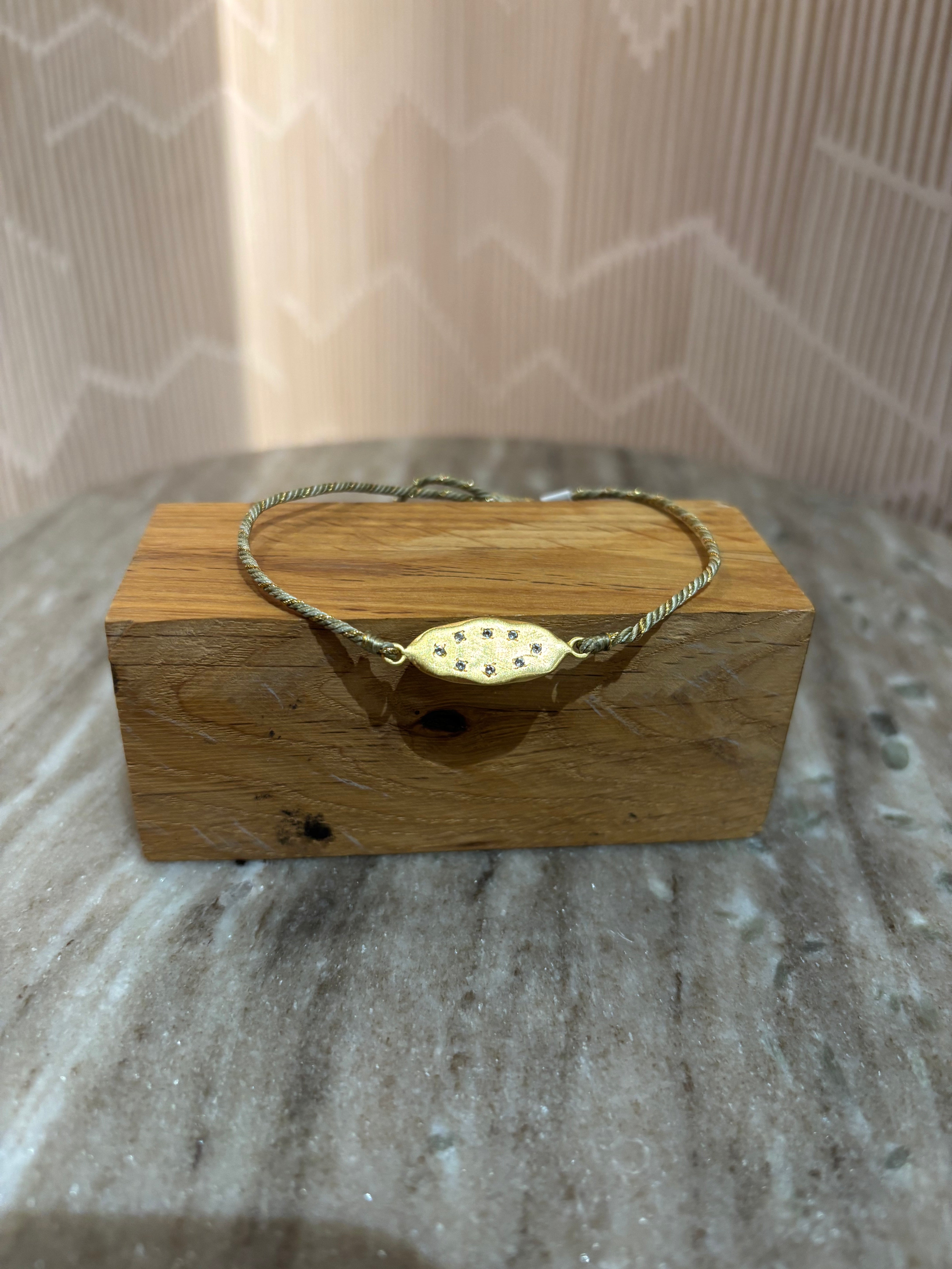 The Sophie Deschamps Indira Bracelet showcases natural white topaz gemstones set in radiant gold, blending timeless beauty with artisanal craftsmanship. Its adjustable sliding knots provide a customizable fit, while the unique handcrafted design captures the enchanting glow of golden hour, offering a sophisticated touch to any ensemble.