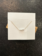 This elegant gold-filled necklace features three lustrous freshwater pearls, embodying timeless sophistication. Its delicate design makes it a perfect accessory for both everyday wear and special occasions, adding a subtle touch of refinement to any outfit.