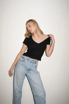 LnA Fitted Deep V Cotton Tee - Black