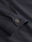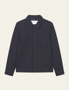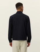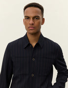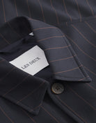 This edition of Les Deux's signature Marseille Jacket comes in a light pinstripe pattern. It features chest pockets and button cuffs.