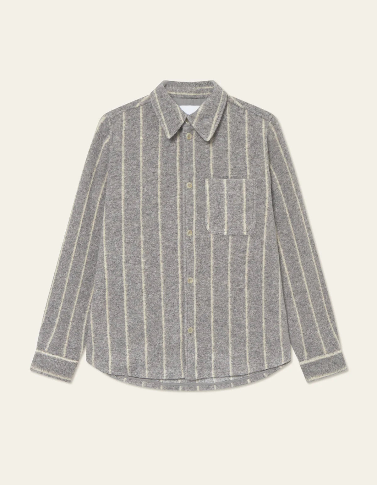 Les Deux Lennon Wool Pinstripe Overshirt - Grey Melange