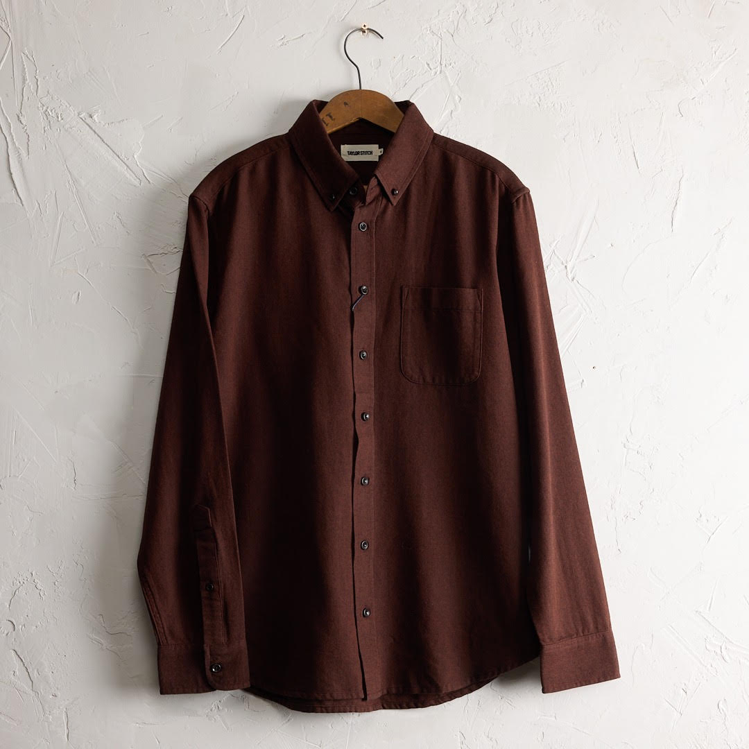 The Jack in Ginger Herringbone is a refined essential crafted from 5-oz. organic cotton with a subtle herringbone weave. Its tailored silhouette features higher armholes for unrestricted movement and a versatile length that transitions seamlessly from tucked to untucked styling. Built with meticulous construction—double-needle felled seams, lock-stitched buttons, and a signature button-down collar—this shirt delivers lasting durability. The ginger herringbone fabric is pre-washed for an effortlessly soft, lived-in aesthetic, while the absence of pleats ensures crisp lines and minimal maintenance. A single rounded chest pocket completes the understated design.