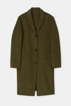 Upgrade your winter wardrobe with our Closed Wool Coat in Clover Green. Made with high-quality wool, this single-breasted overcoat features a classic notch collar and flap pockets, perfect for keeping your hands warm. The dark green color adds a touch of sophistication to any outfit. Stay warm and stylish this season.