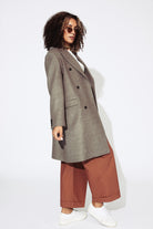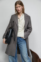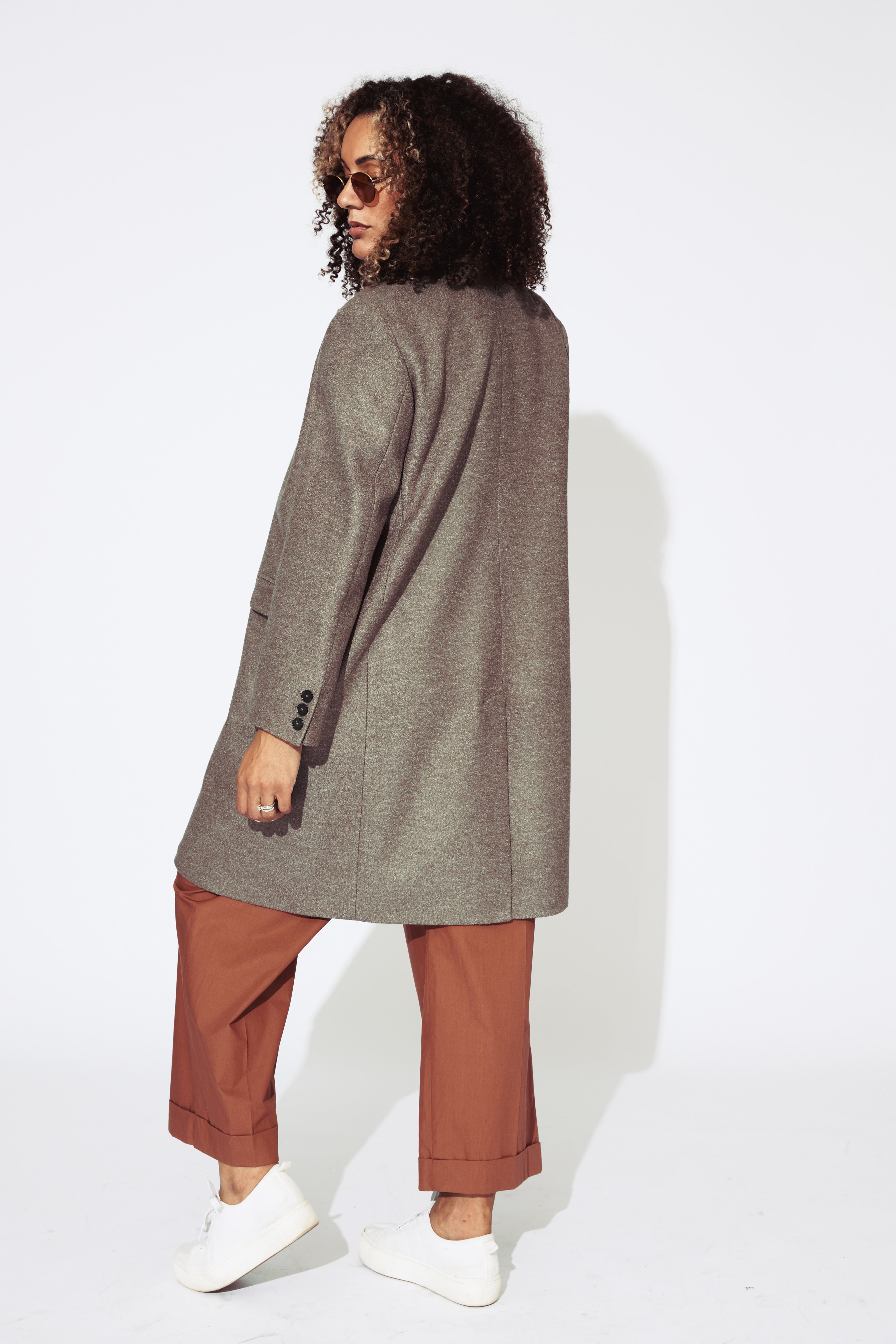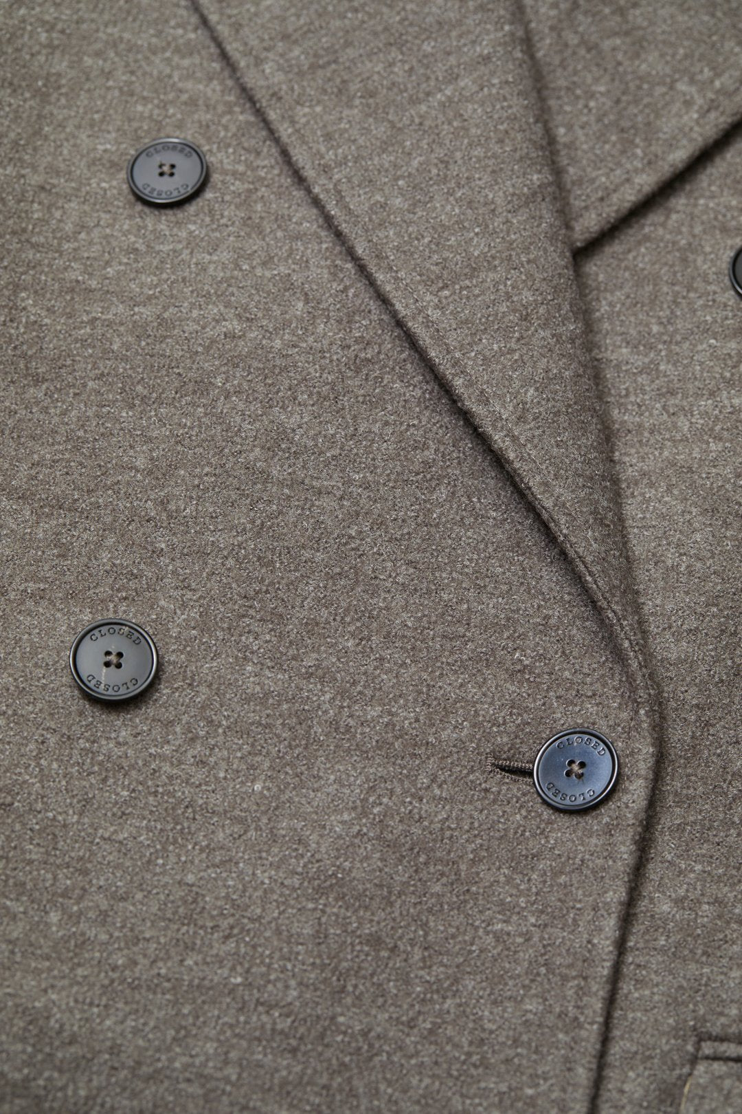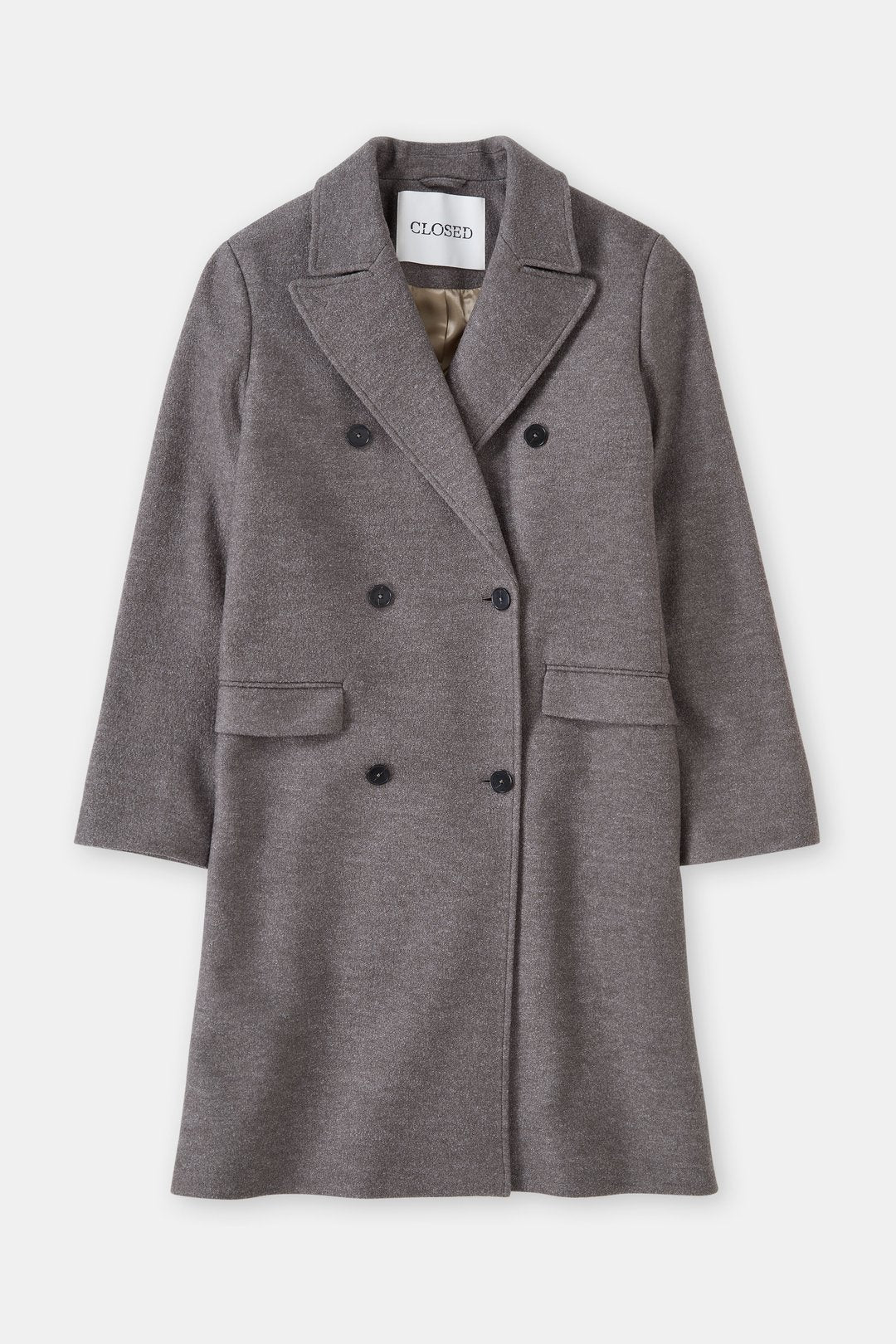 Expertly crafted from luxurious Italian bouclé fabric, this high-quality wool blend coat from CLOSED is the perfect addition to your transitional season wardrobe. With a double-breasted design, lapel collar, and horn-look buttons, this coat exudes sophistication and style. Other features include flap pockets, smooth lining, and a buttoned inside pocket for added functionality. Manufactured by our trusted partner Texdata in Romania.