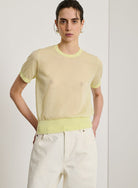 Expertly crafted from sheer knit cotton, the Soeur Dua Top in Acid Yellow features a straight cut design with a tapered hem for a flattering fit. The short sleeves and round neck add to its stylish appeal. A sheer delight to add to your wardrobe