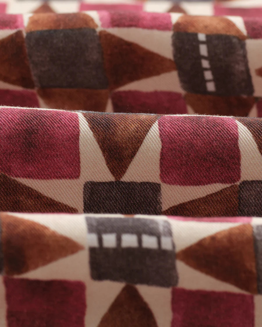 Wax London Men's Painted Geo Tencel Didcot Short Sleeve Shirt - Burgundy