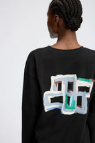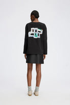 The Munthe Roomu jersey is an elegant T-shirt with a small artistic flower print on the front and a beautiful graphic MUNTHE emblem on the back. The T-shirt has a loose fit, long sleeves, and a round neckline.