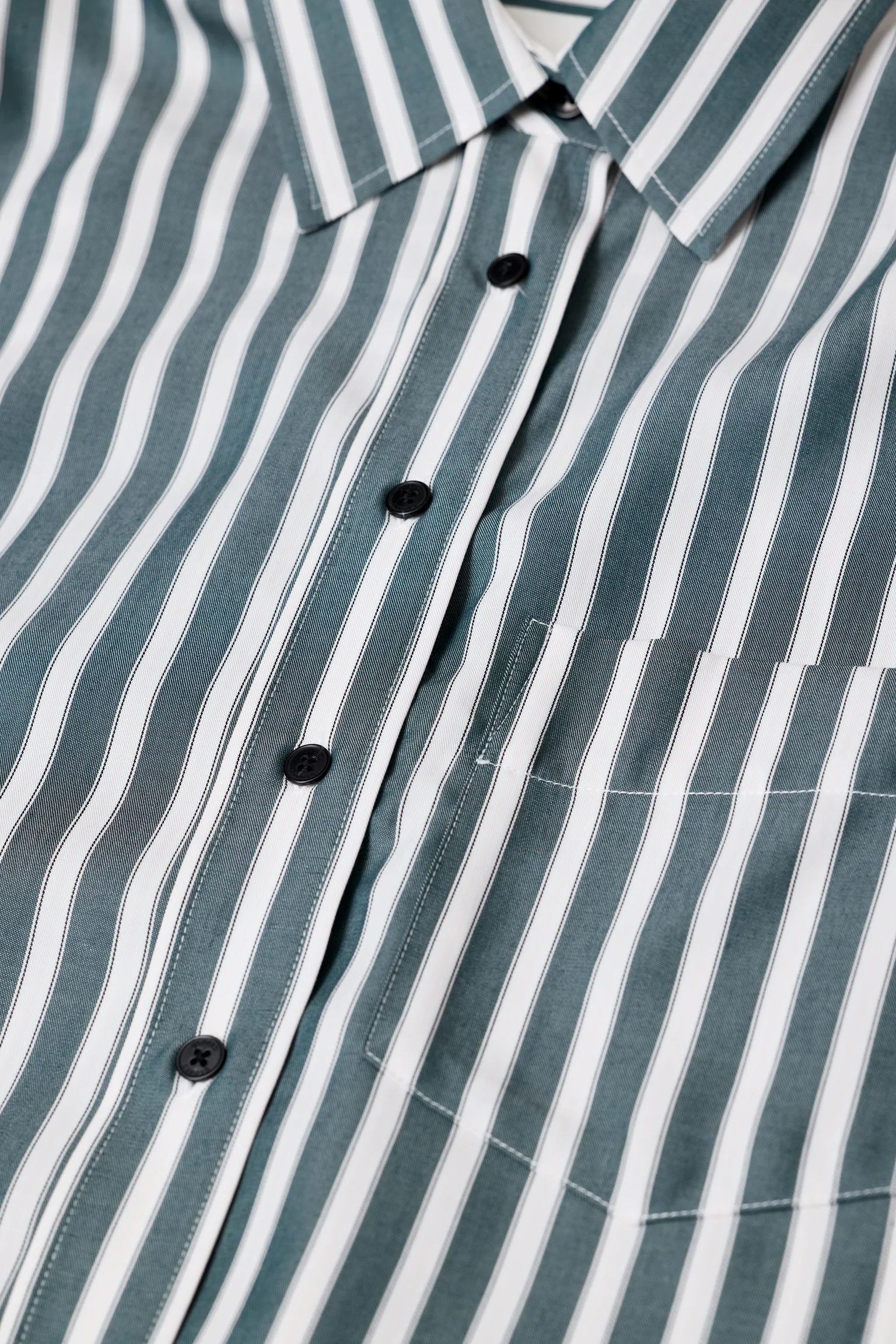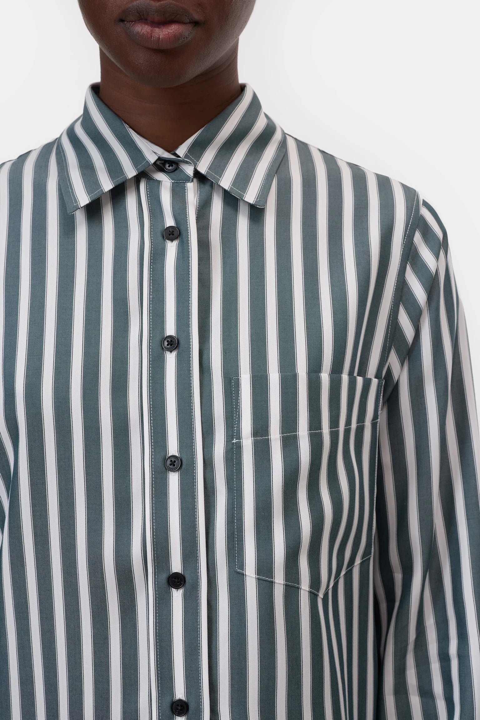 This Closed Cropped Classic Shirt in royal green combines timeless elegance with modern design. Crafted from 100% Lyocell, it offers a soft, breathable feel and a smooth drape. The button-down front and subtle stripes enhance its sophisticated appeal, while the cropped cut adds a contemporary edge. Perfect for refined, versatile styling.