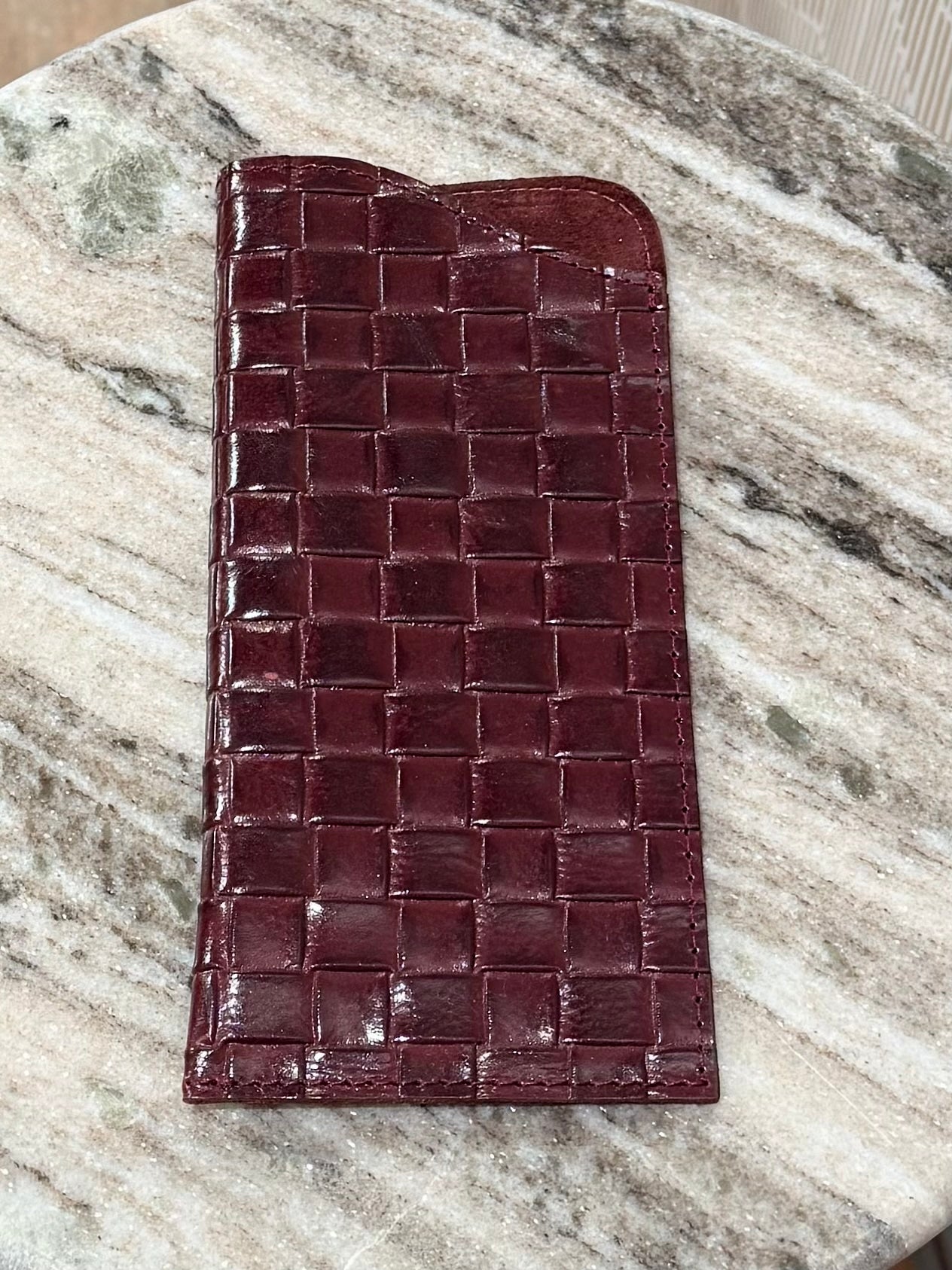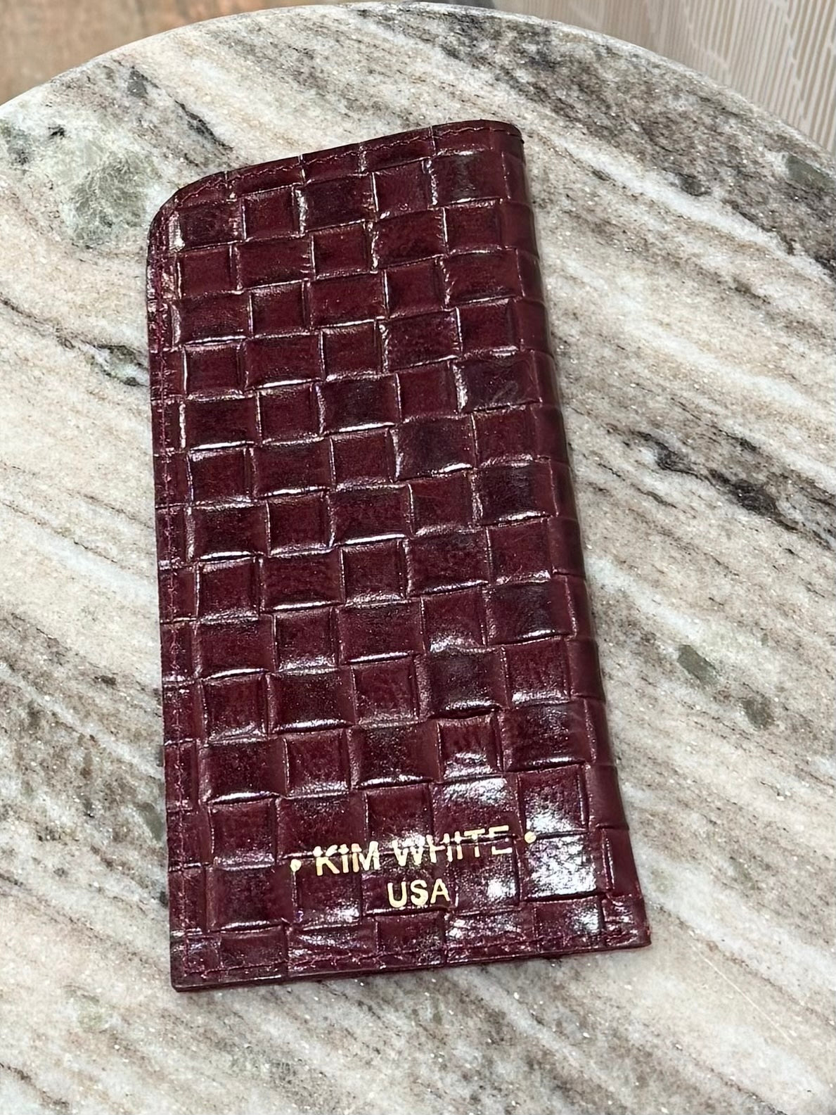 Kim White Eyeglasses Case - Burgundy Basketweave