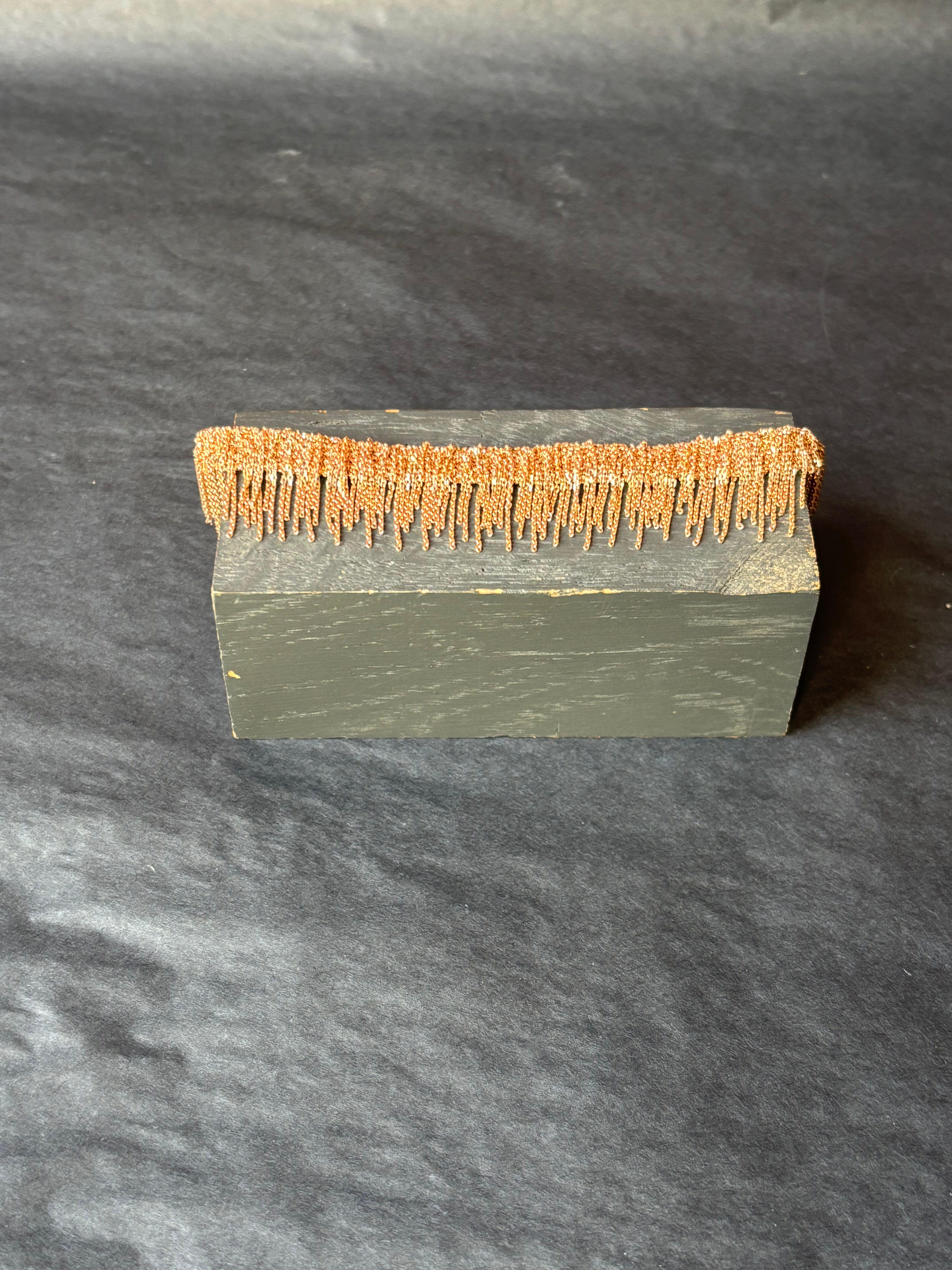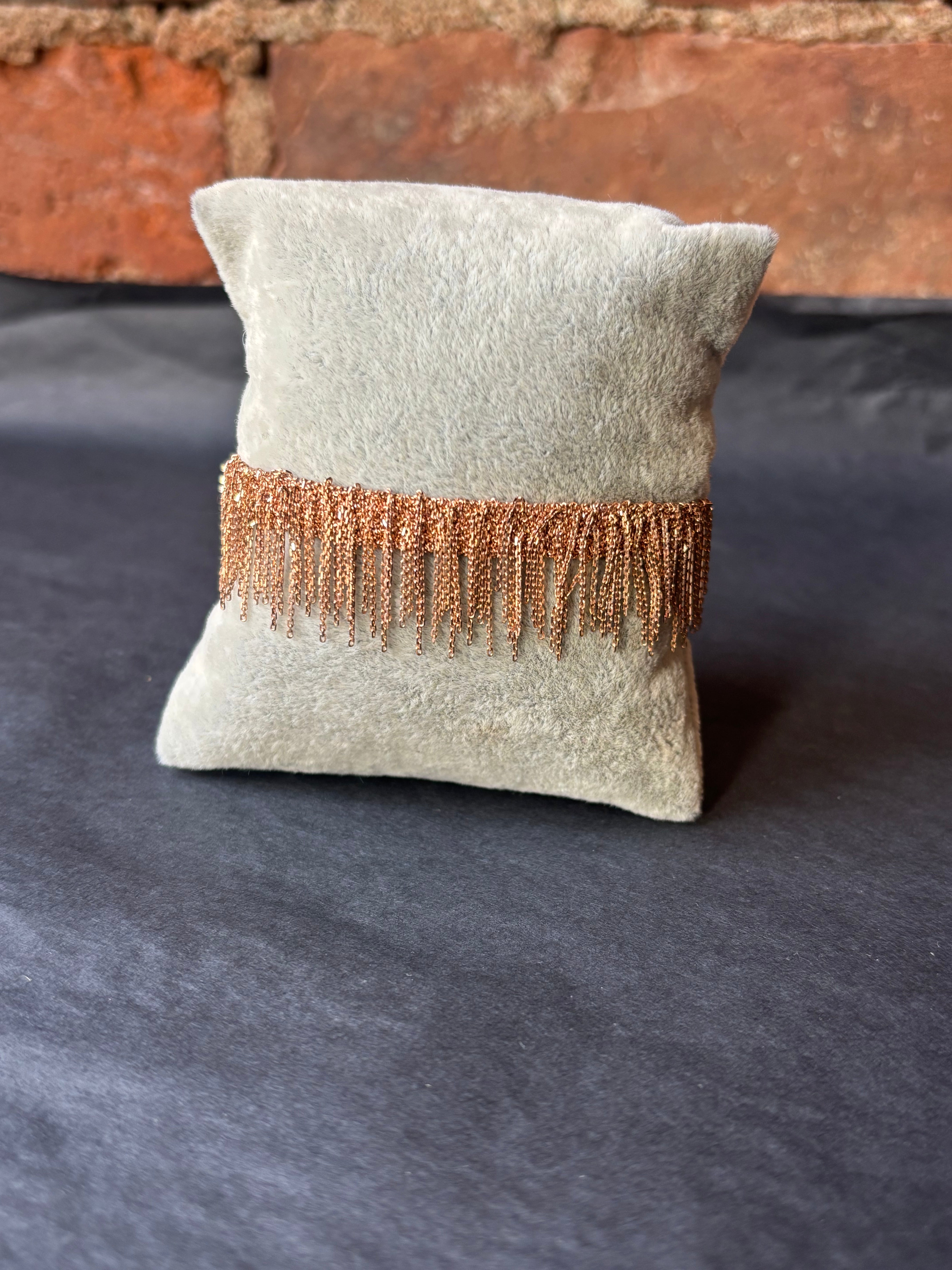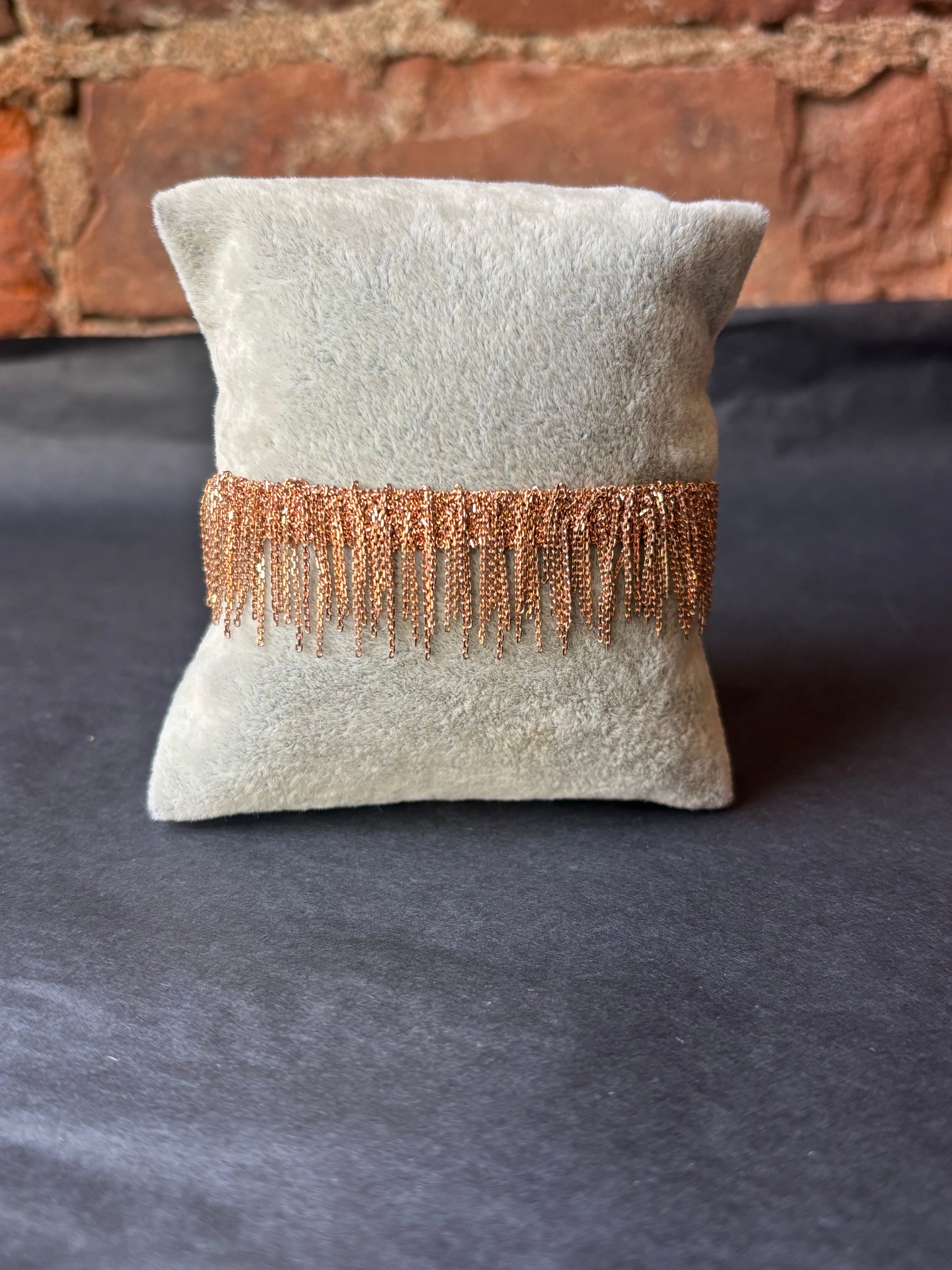 Simple and casual woven bracelet with fringes made of sterling silver chain with a pink gold finish.