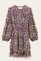 Indulge in the luxurious beauty of the Bash Paris Loly Dress. Made from high-quality viscose, this dress boasts a v-neckline, tiered layers, and midi sleeves for a boho chic look. Elevate your style with this elegant and exclusive piece in a stunning shade of violet.