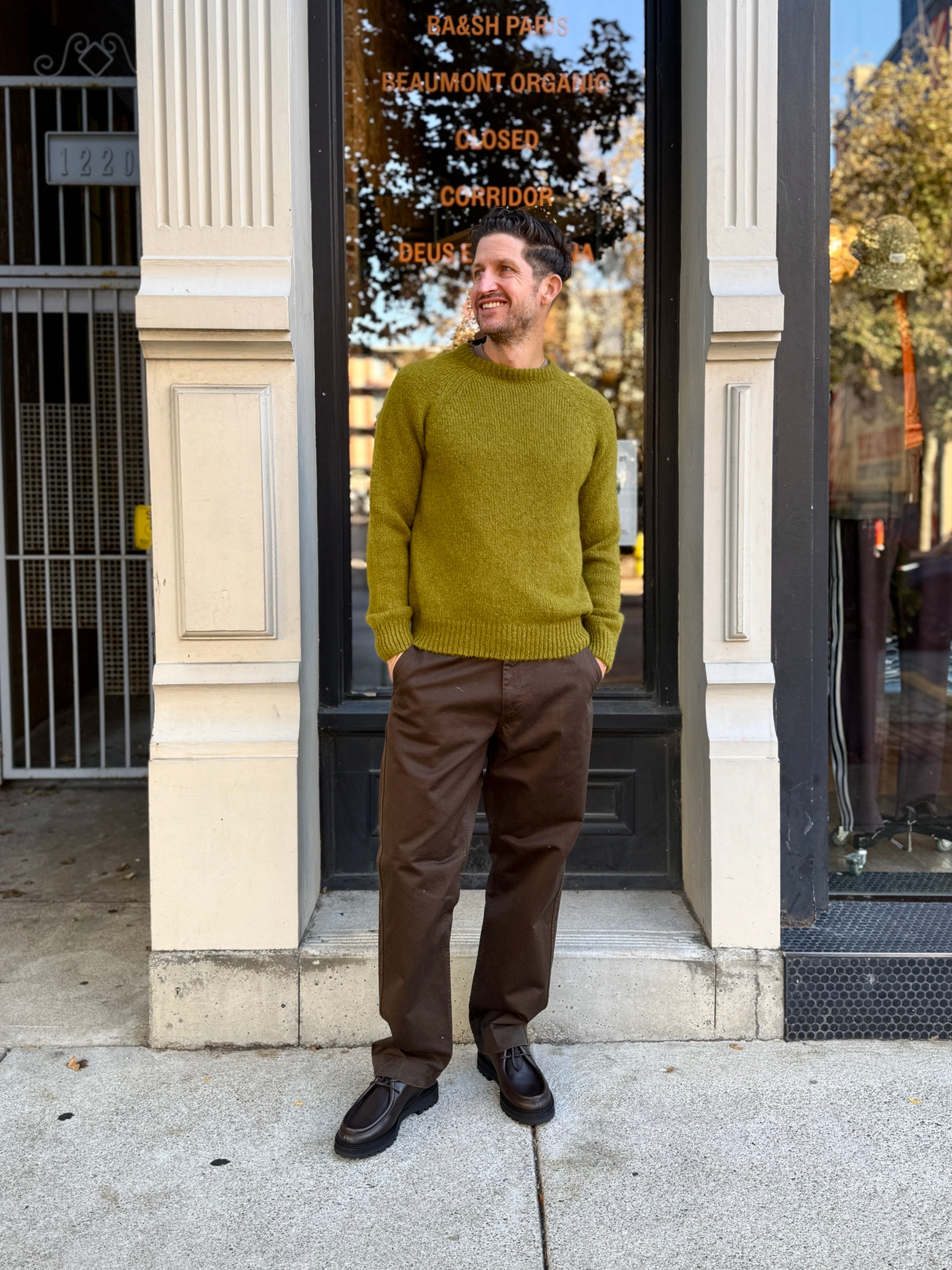 The Bud Alpaca Sweater is made of a Peruvian alpaca yarn, where some of the finest alpaca originates from. Alpaca fibers offer superior warmth and softness, while also being hypoallergenic, moisture-wicking and temperature regulating. The Bud Sweater has a raglan sleeve and a relaxed silhouette with a structure that allows the garment to maintain its shape with wear.