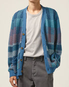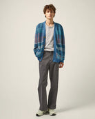 Made from 100% cotton, the Corridor Blow-Up Plaid Cardigan in blue boasts a regular fit and top entry hip pockets. Expertly crafted in Peru, it features a large plaid design, providing both comfort and style. Perfect for any occasion, this cardigan is a must-have for your wardrobe.