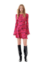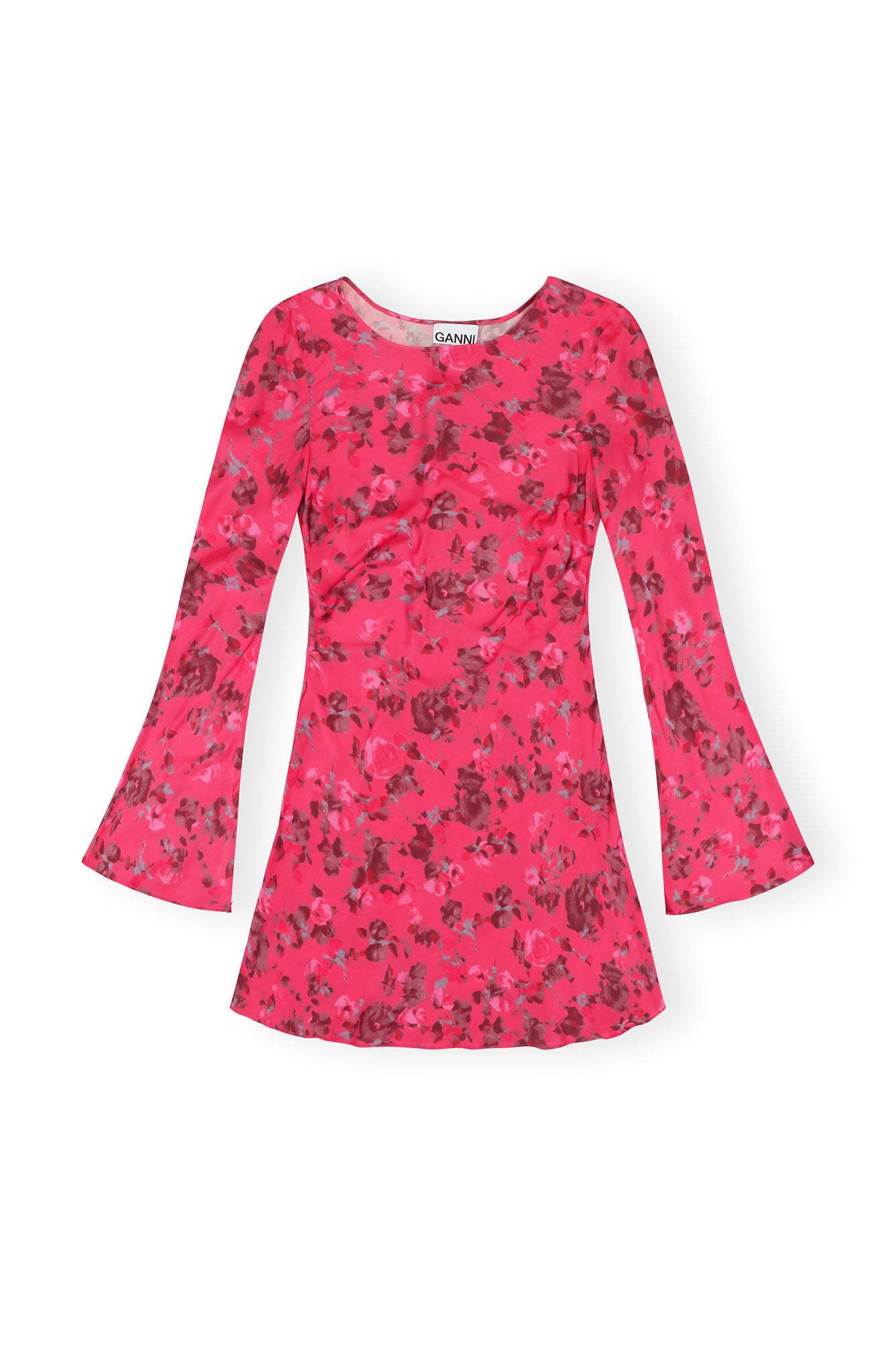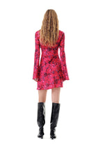 Ganni Printed Satin Mini Dress - Raspberry Wine